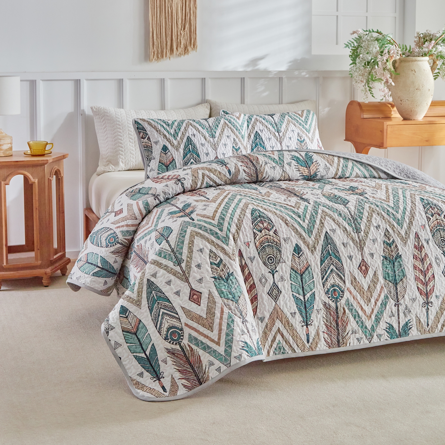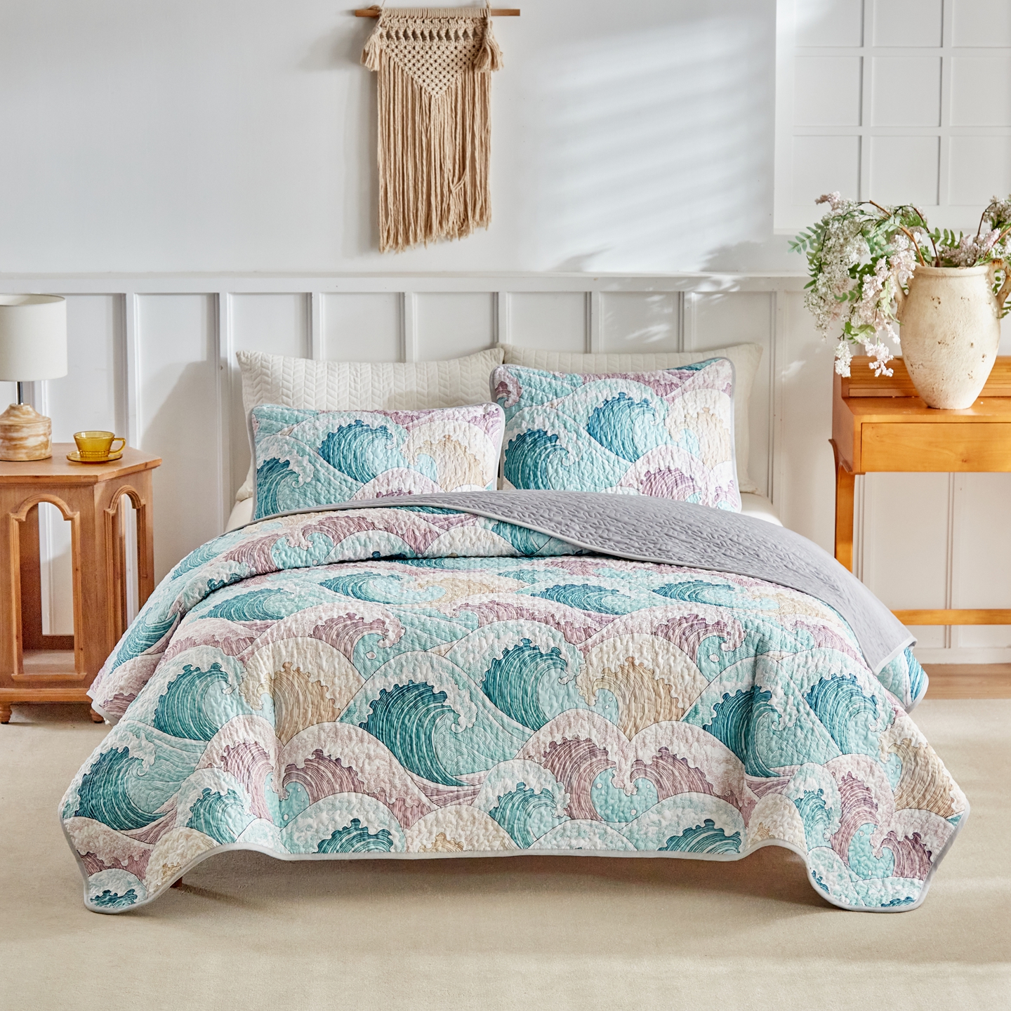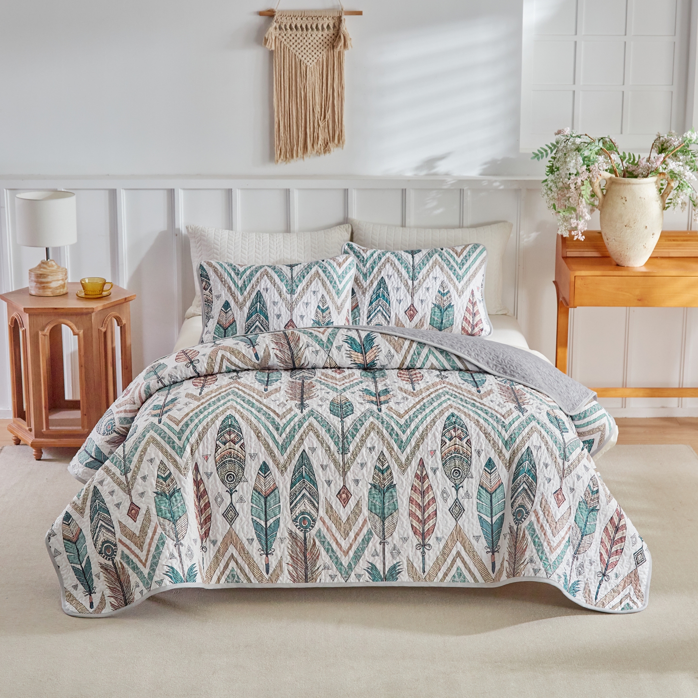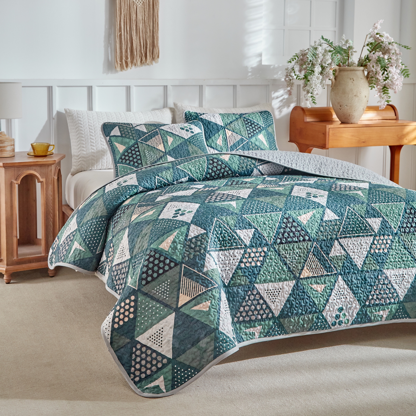(总)温宁2025新款跨境外贸专供斜方格床盖,绿色,米色,银灰
