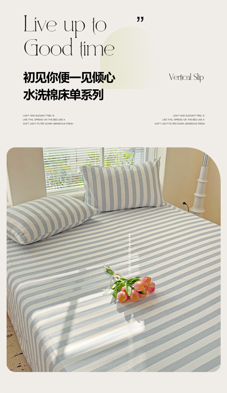 商品名称:爱彼家纺 2026春夏新款中条床单水洗棉亲肤柔软床单三件套-条纹系列一 蓝灰中条