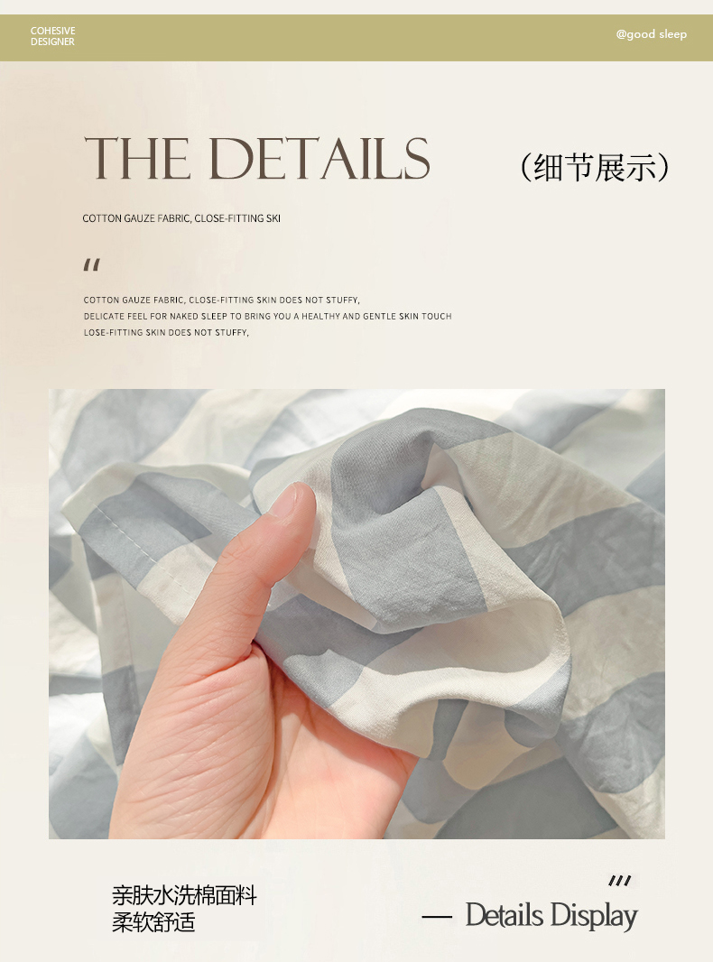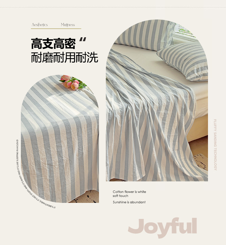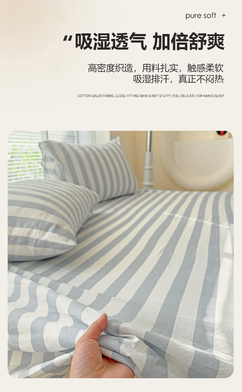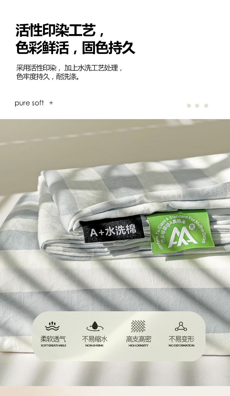 爱彼家纺 2026春夏新款中条床单水洗棉亲肤柔软床单三件套-条纹系列一 蓝灰中条