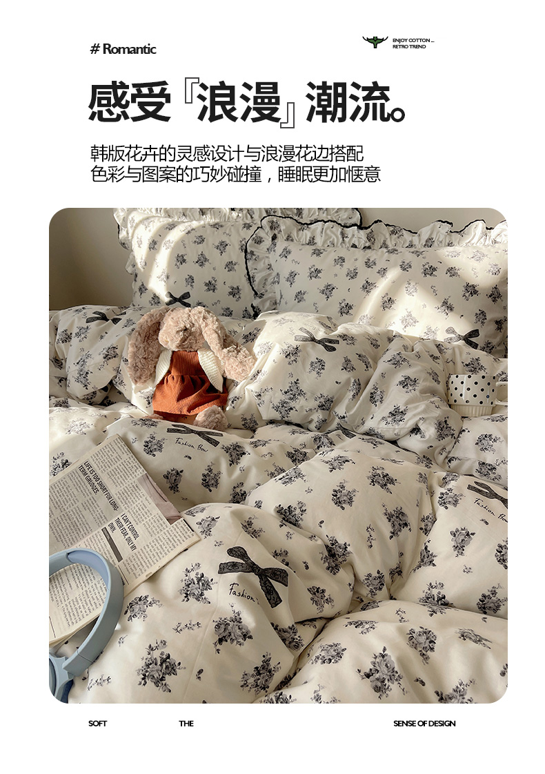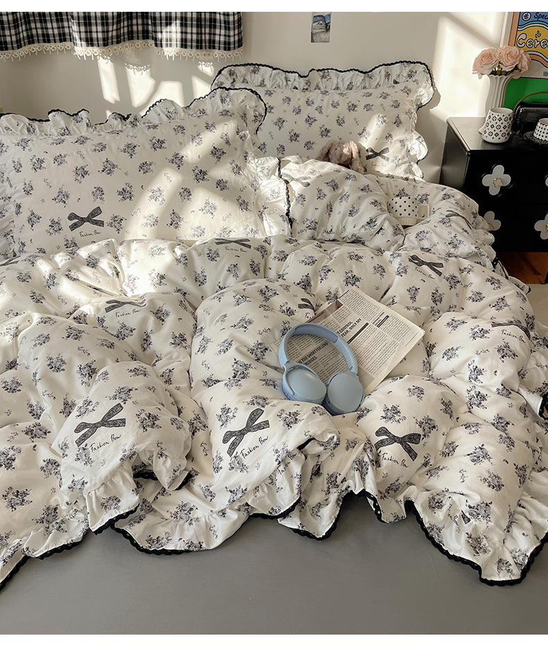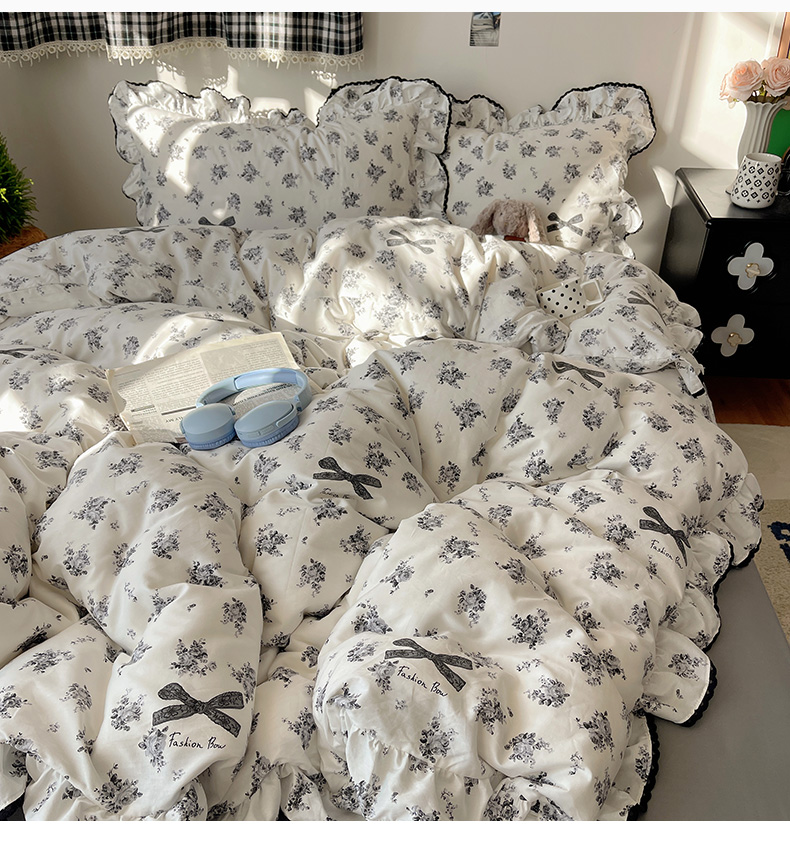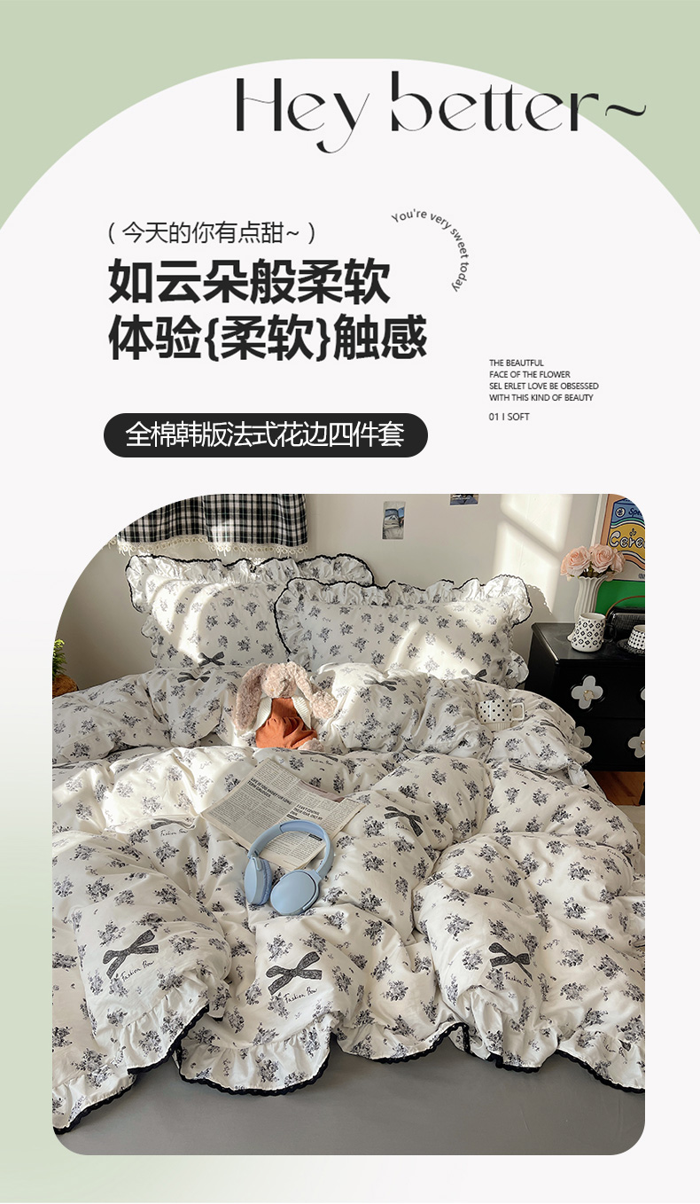 当前位置: 91家纺网 > 商品网购 > 床品套件 > 四件套 > 全棉普通四件套 > 三朵家纺 2026新款40支13070全棉纯棉韩版法式花边四件套 蝴蝶花语