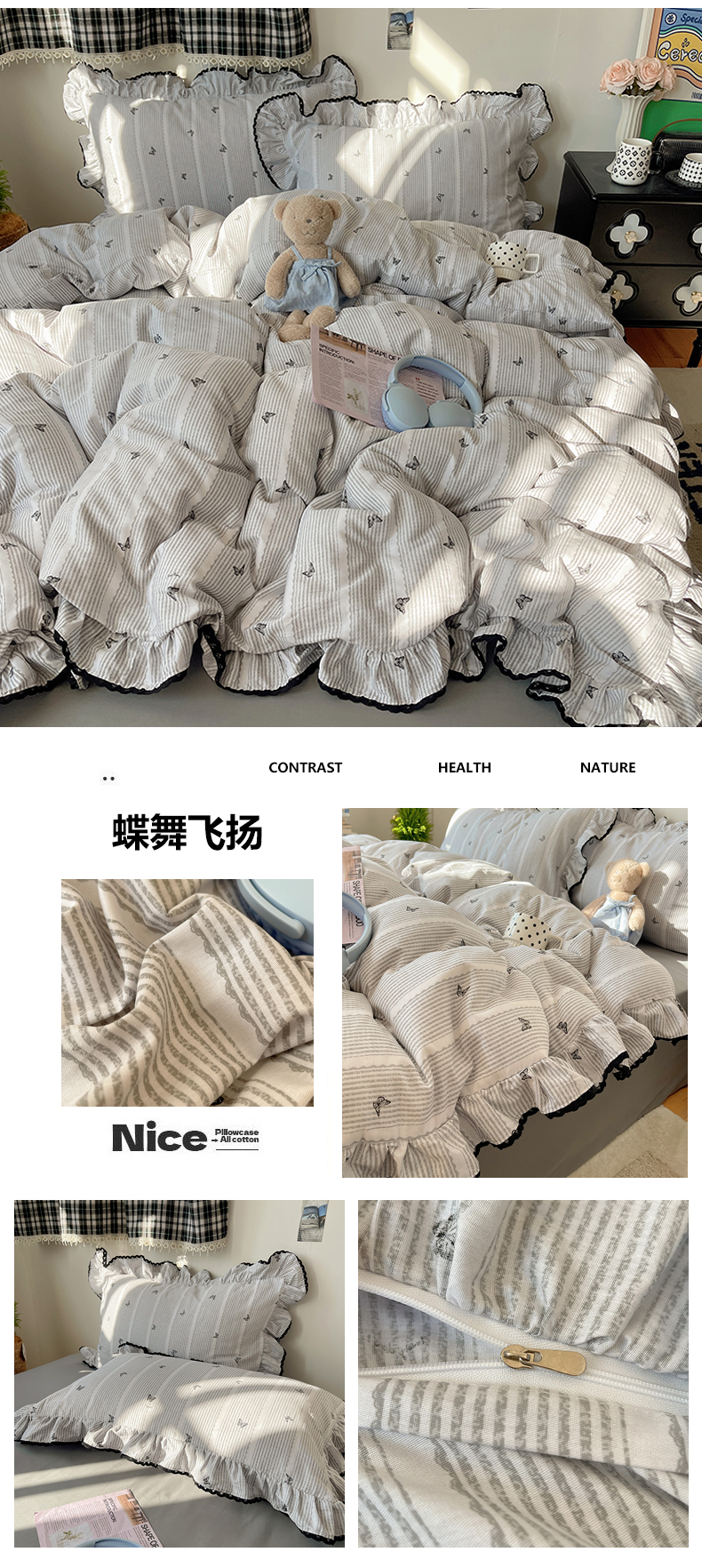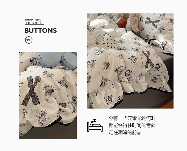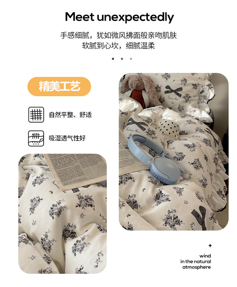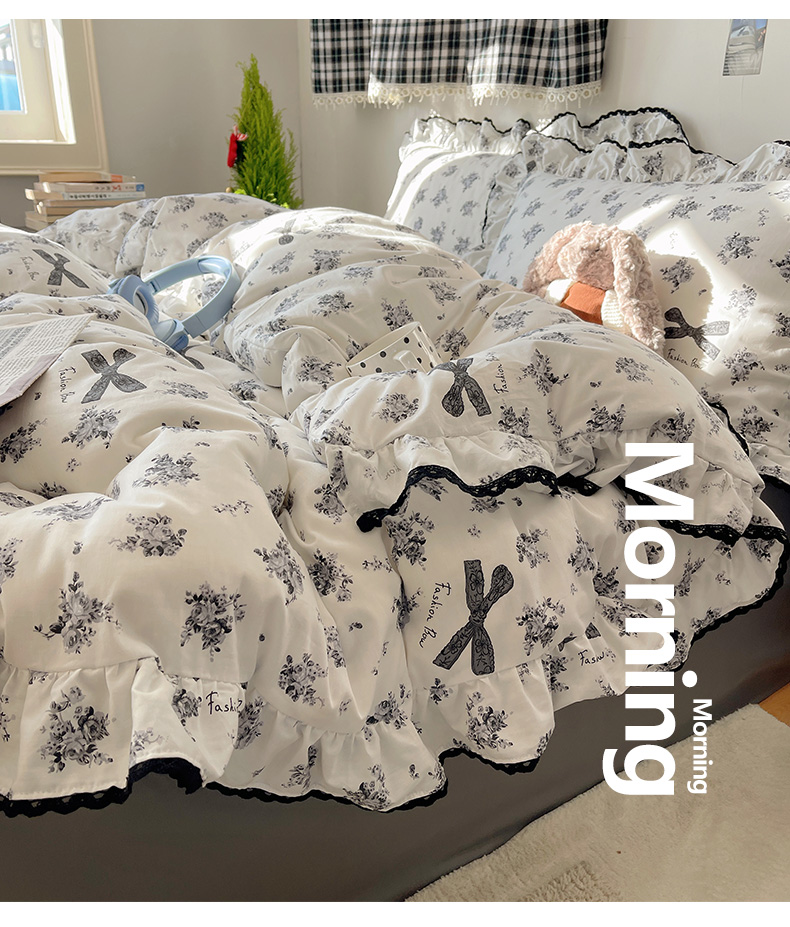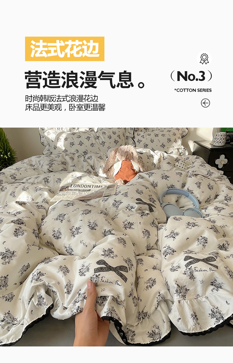 当前位置: 91家纺网 > 商品网购 > 床品套件 > 四件套 > 全棉普通四件套 > 三朵家纺 2026新款40支13070全棉纯棉韩版法式花边四件套 蝴蝶花语