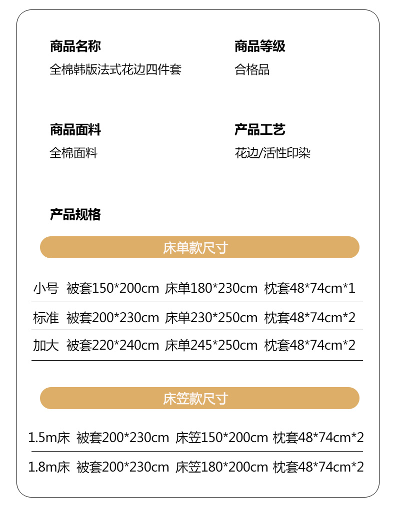【床笠款】1.5四件套-被套200x230 | ¥140.00 |