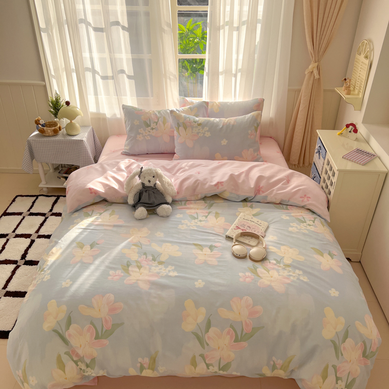 曼之夏 2026新款全棉印花花卉四件套 奶油字母