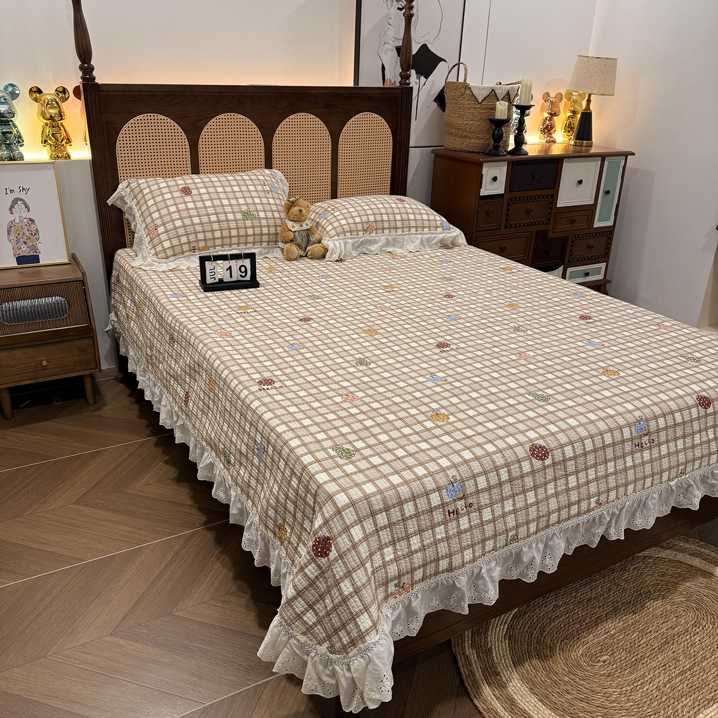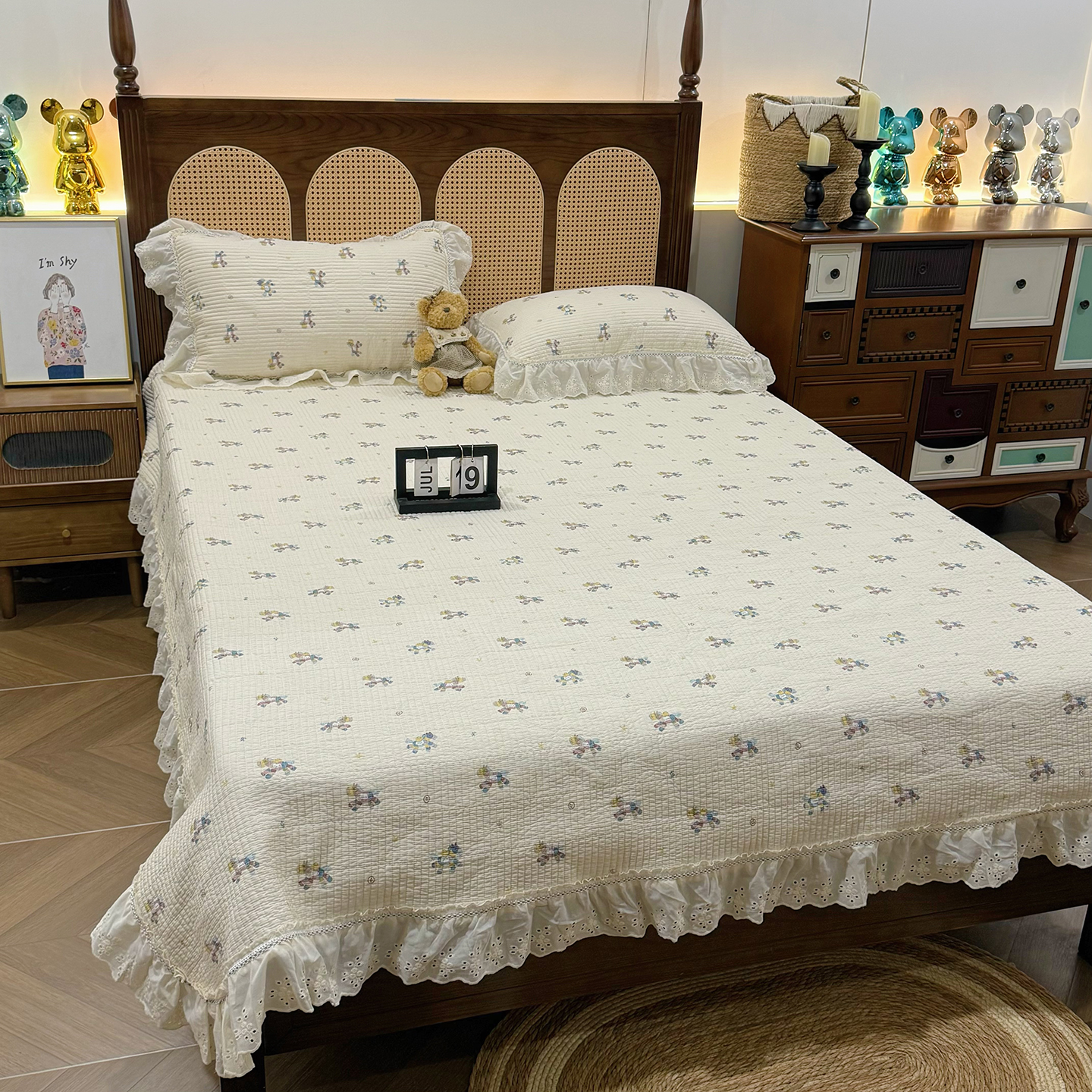 (总)欣宜家纺 2026新款法式双面全棉填充棉花加厚花边床盖三件套,阿柴小镇,哆米兔,繁星,恋恋花开-绿,魔法伙伴,南瓜绘,南瓜甜心,千禧少女-咖,芊芊花海,甜糯软糖,小马浅浅,樱桃小可-咖,游乐园