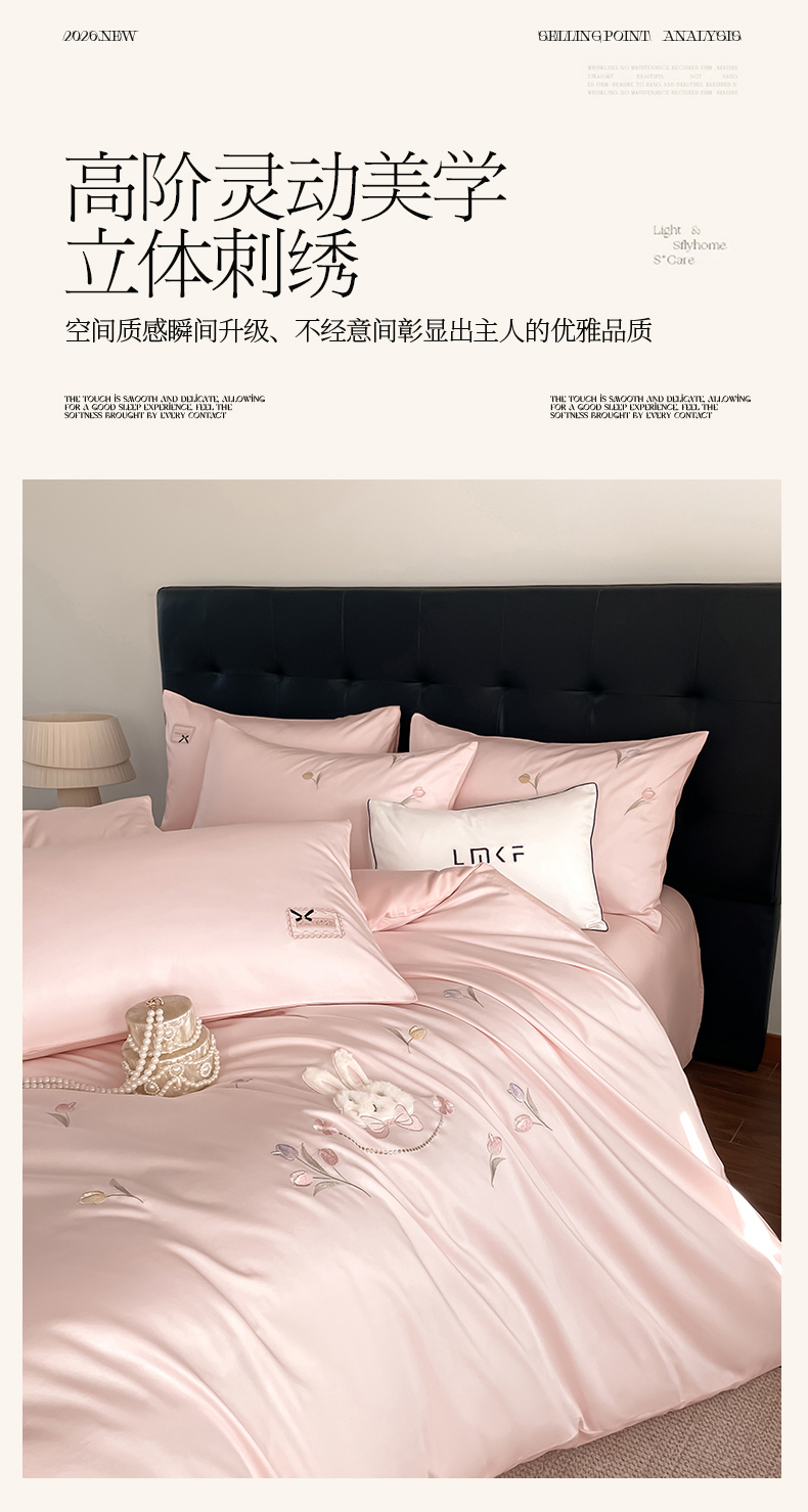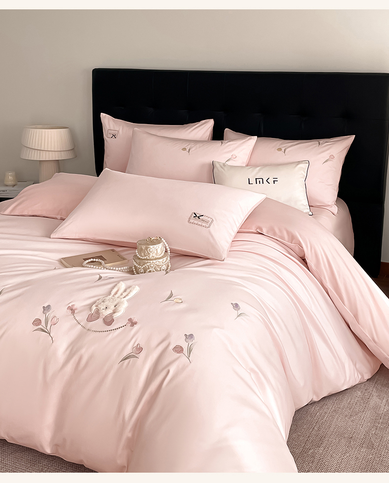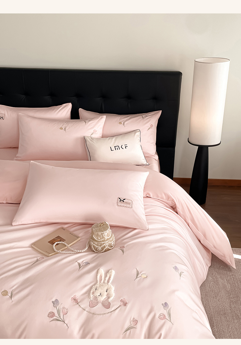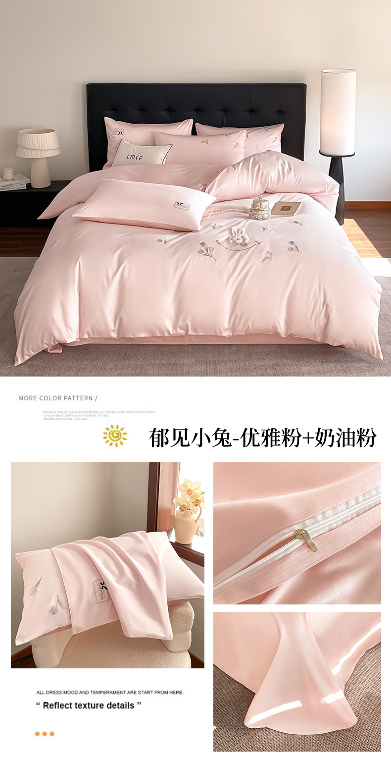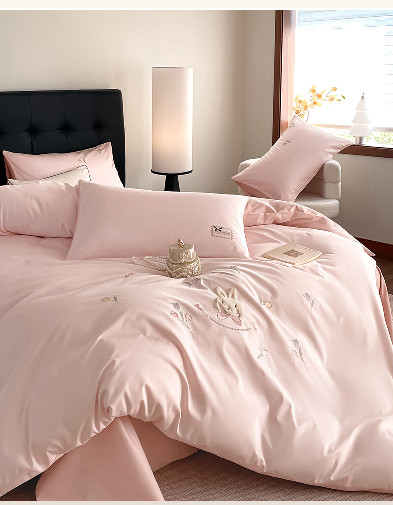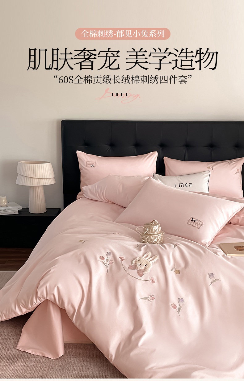 当前位置: 91家纺网 > 商品网购 > 床品套件 > 四件套 > 长绒棉四件套 > 蓝米卡夫 2026春季新款-60S长绒棉贡缎刺绣系列四件套-郁见小兔(礼盒) 郁见小兔-优雅粉+奶油粉