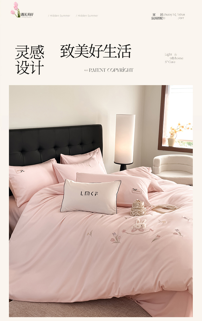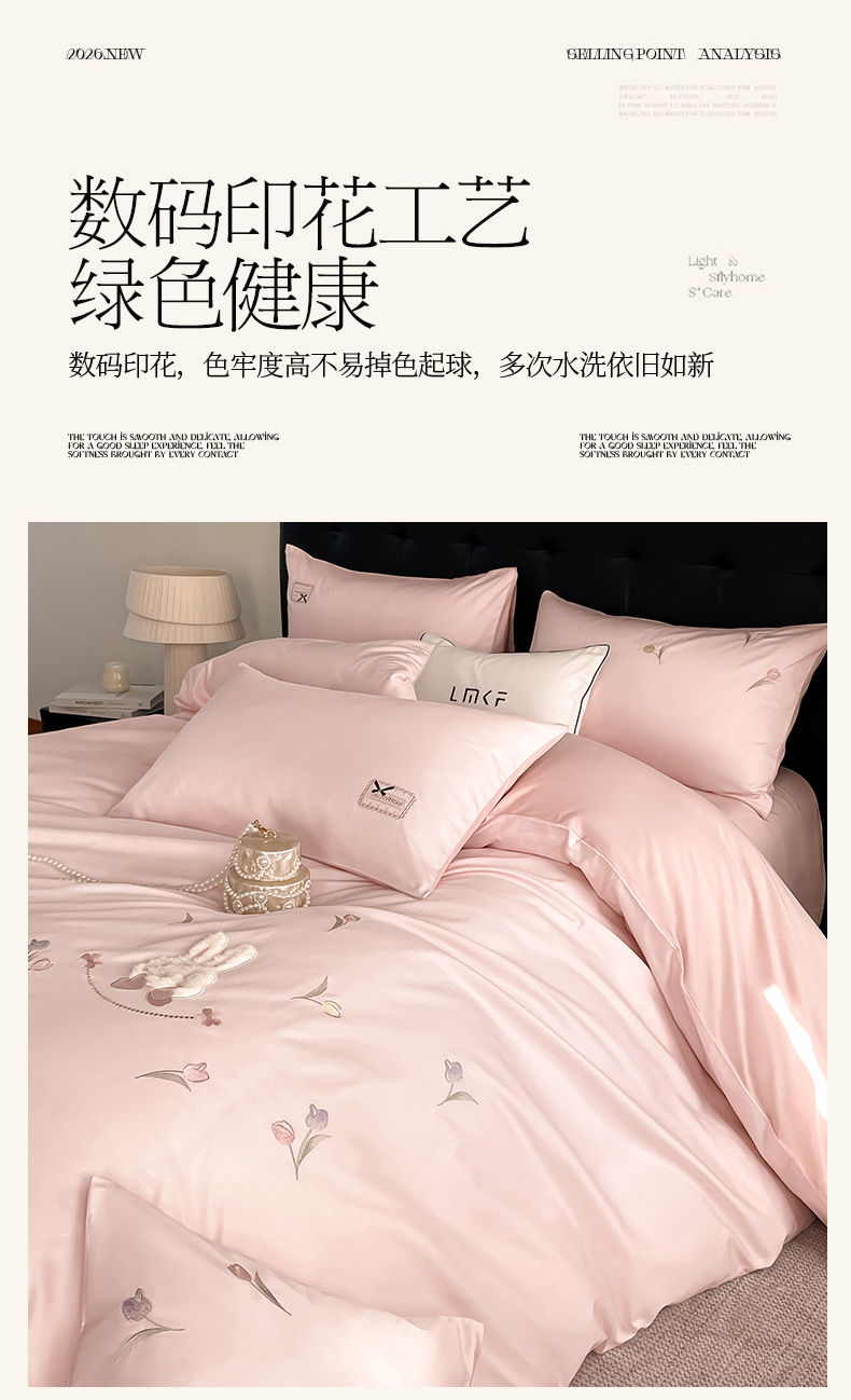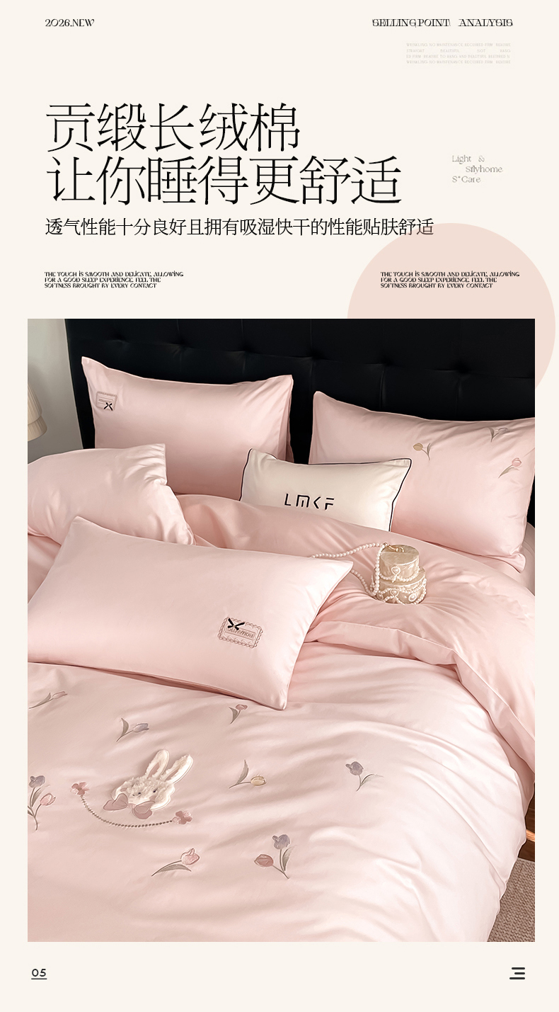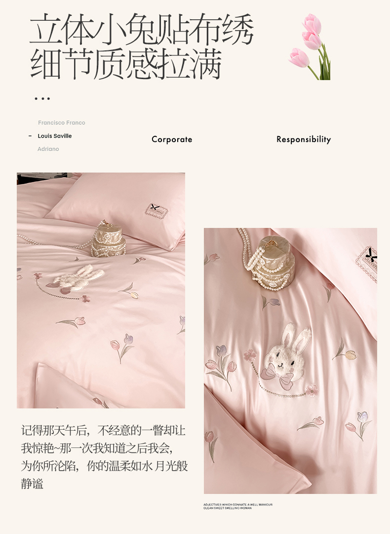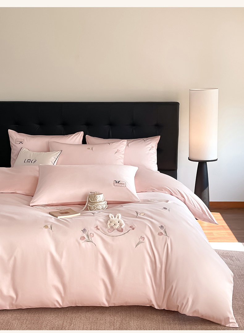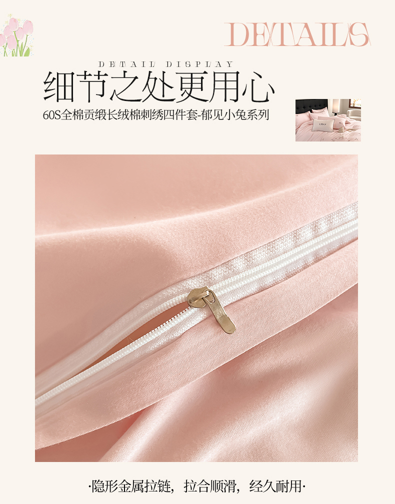 当前位置: 91家纺网 > 商品网购 > 床品套件 > 四件套 > 长绒棉四件套 > 蓝米卡夫 2026春季新款-60S长绒棉贡缎刺绣系列四件套-郁见小兔(礼盒) 郁见小兔-优雅粉+奶油粉