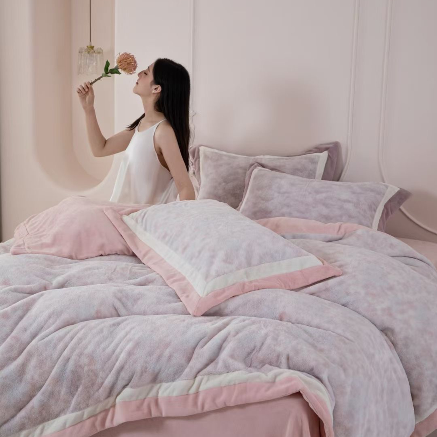 玖琳家纺 2026新款高端高克重水貂绒四件套 浅浅粉色