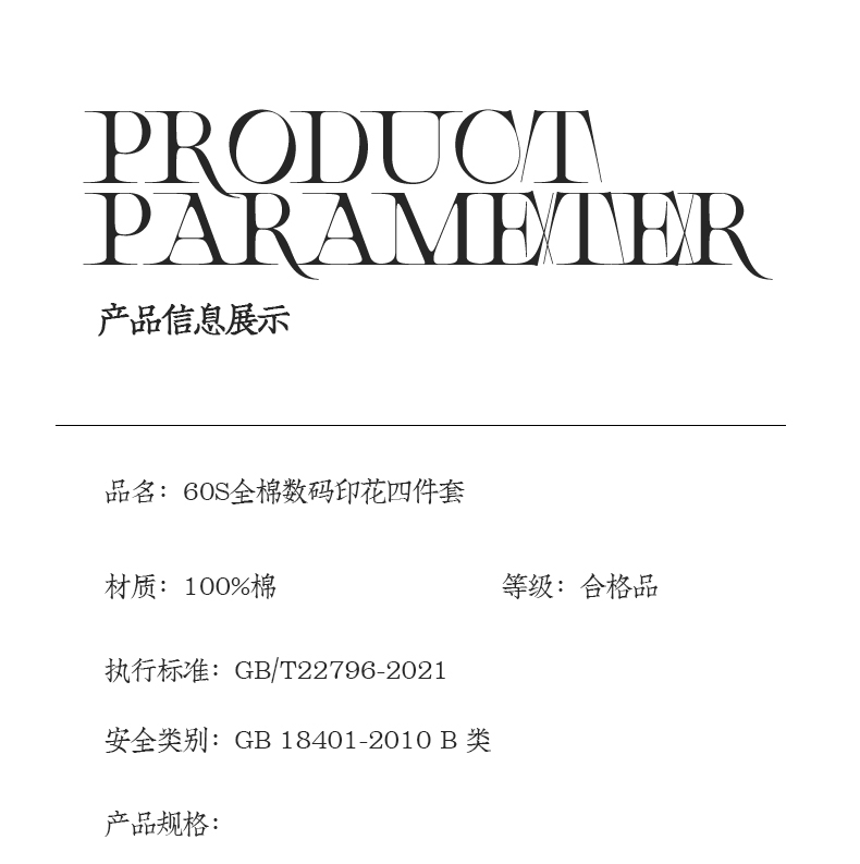 商品名称:(总)蓝米卡夫 2026春季新款-60S长绒棉数码印花贡缎系列四件套(礼盒)