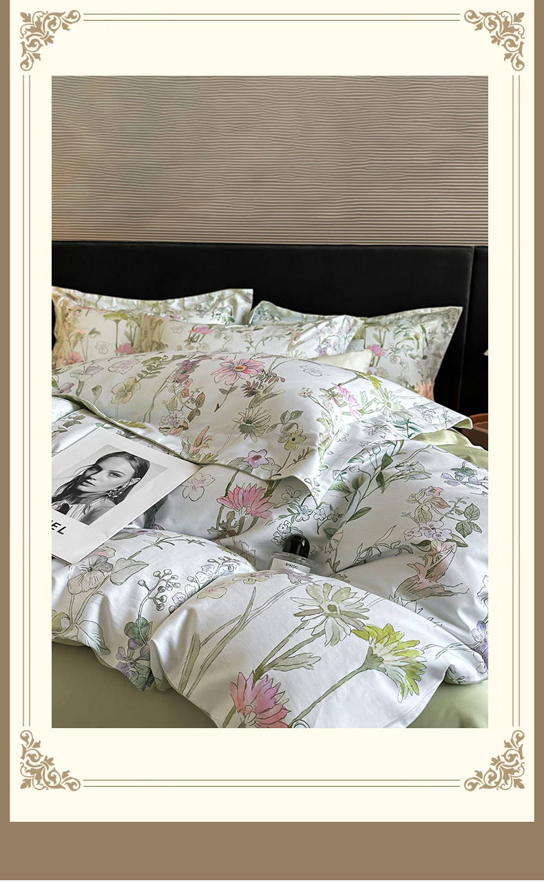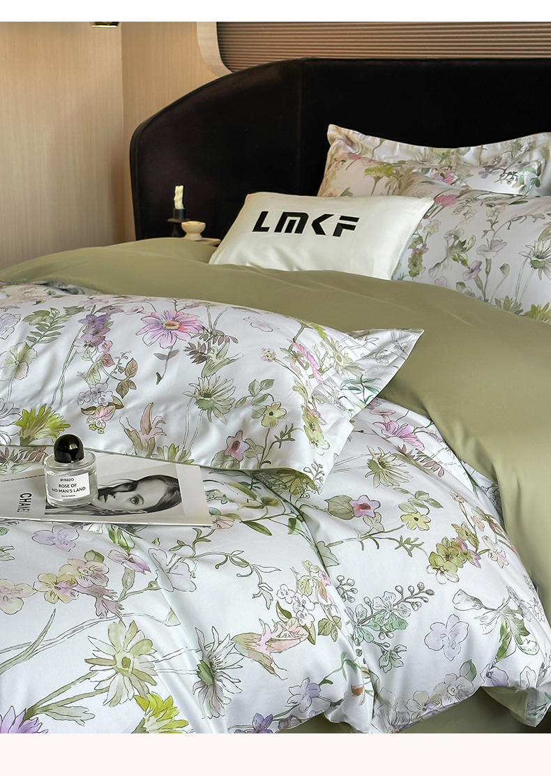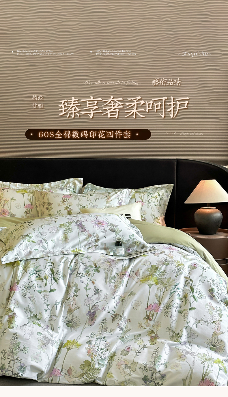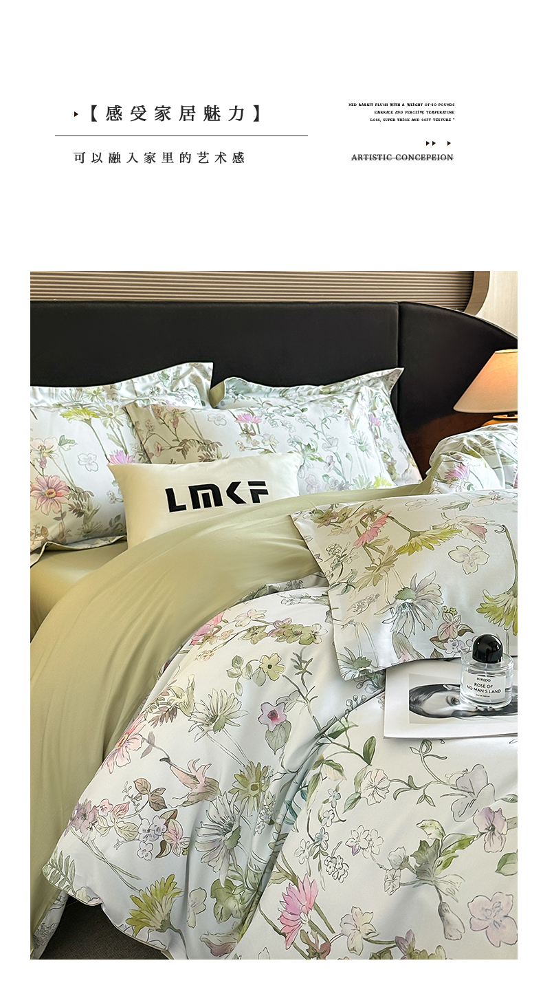 蓝米卡夫 2026春季新款-60S长绒棉数码印花贡缎系列四件套(礼盒) 空谷幽兰-绿