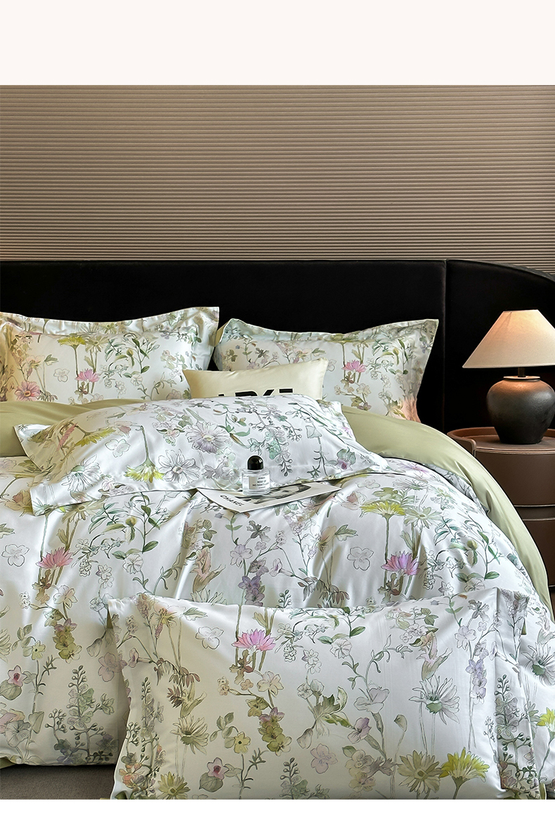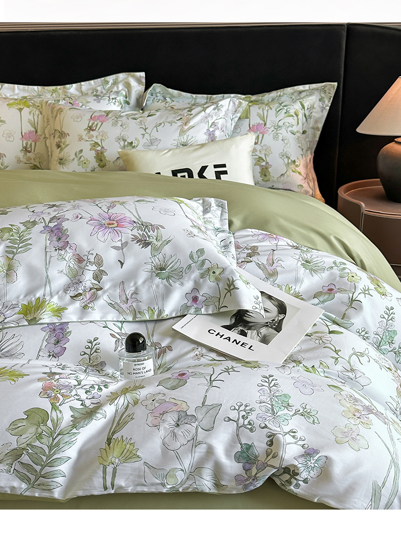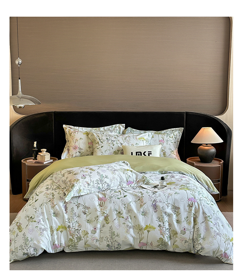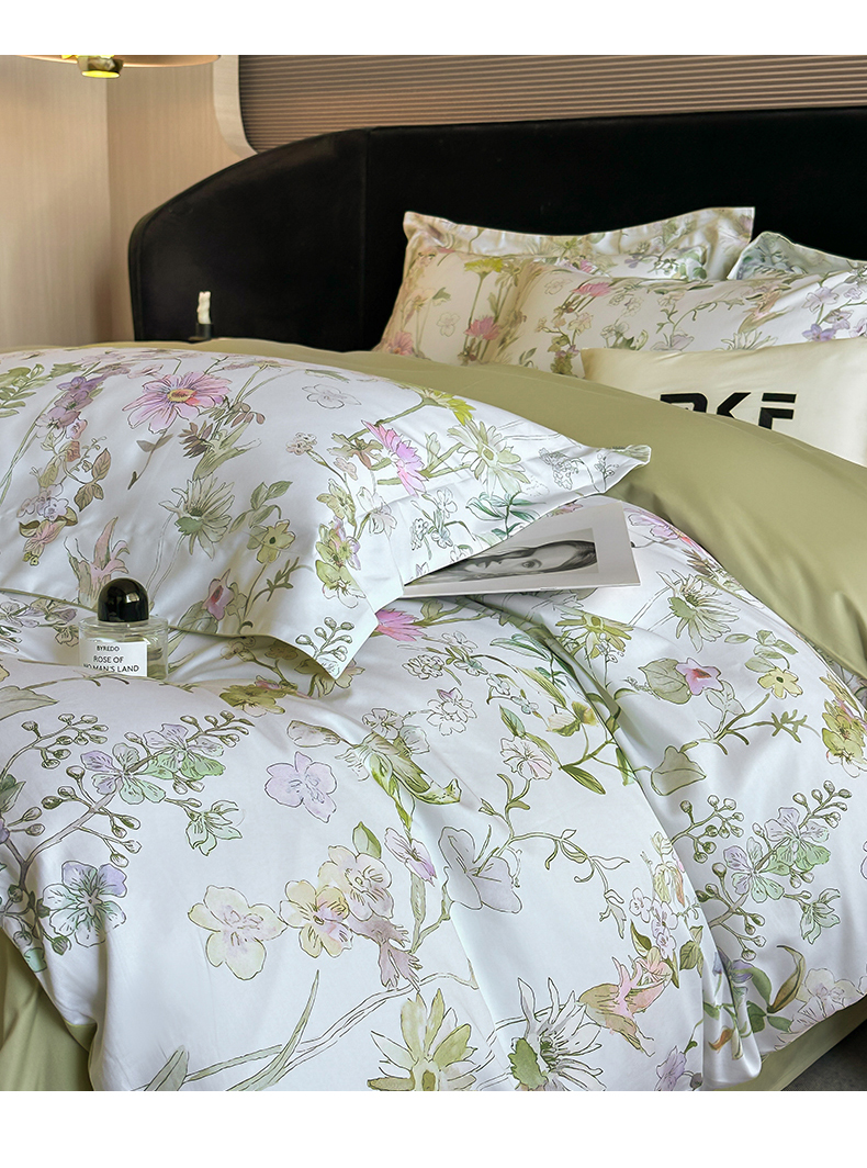 蓝米卡夫 2026春季新款-60S长绒棉数码印花贡缎系列四件套(礼盒) 空谷幽兰-绿