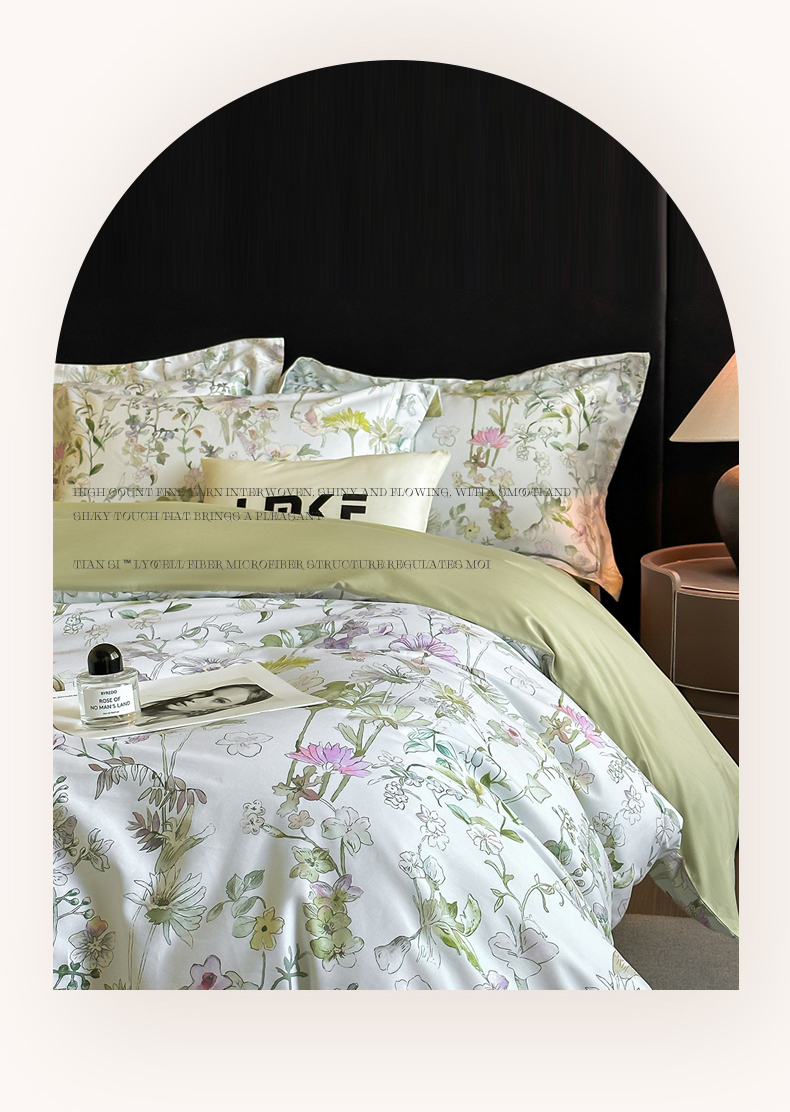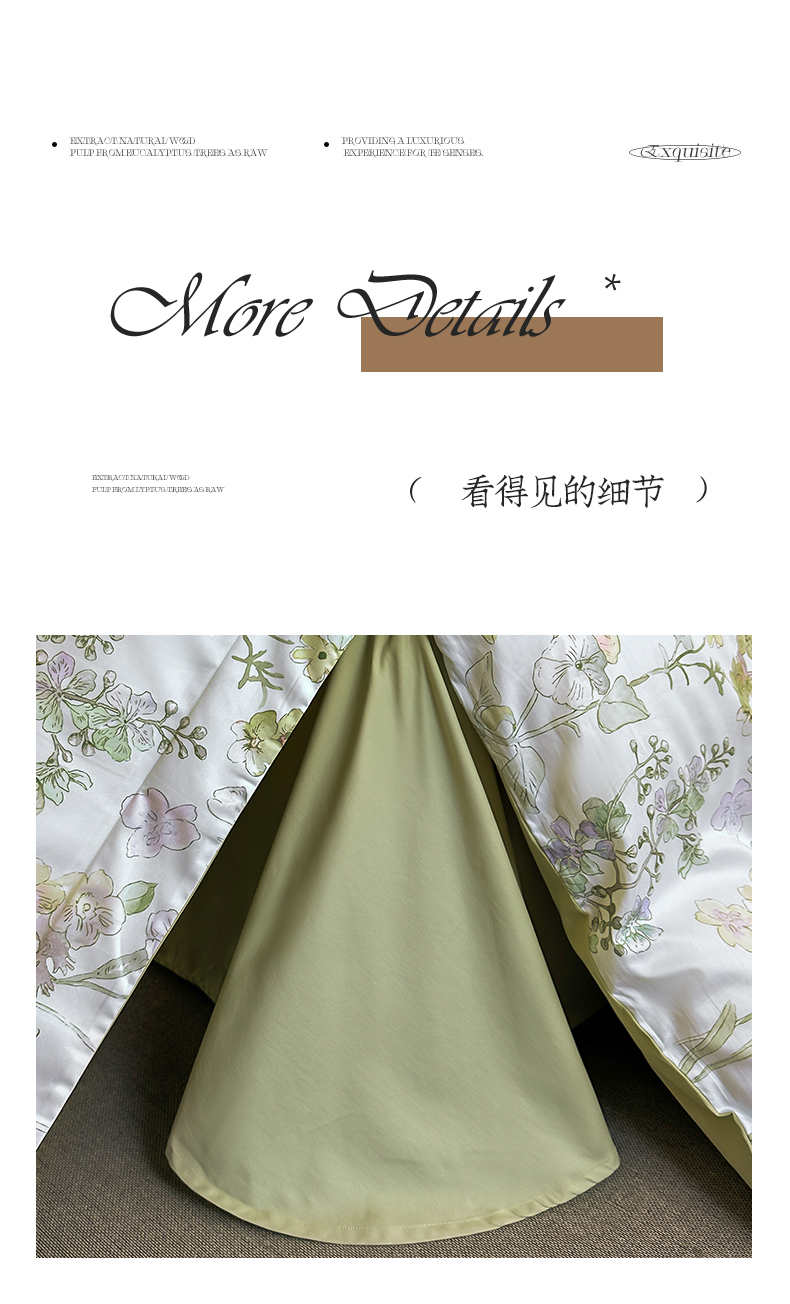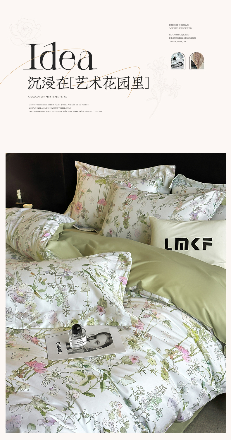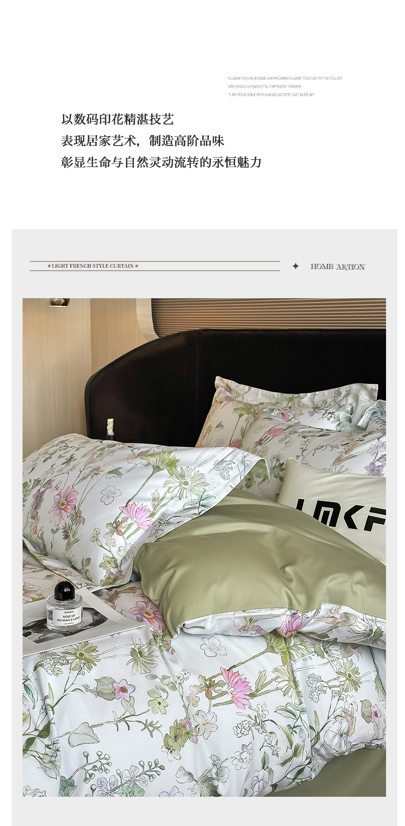 商品名称:蓝米卡夫 2026春季新款-60S长绒棉数码印花贡缎系列四件套(礼盒) 空谷幽兰-绿