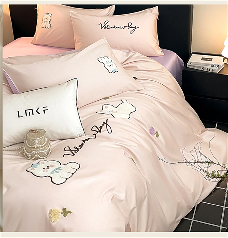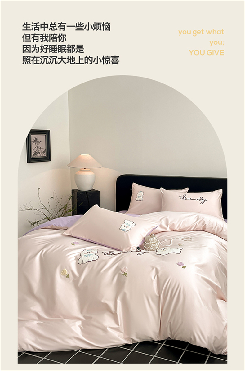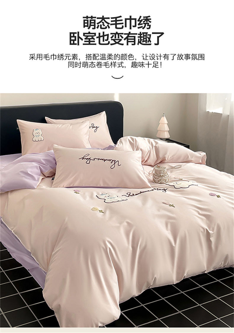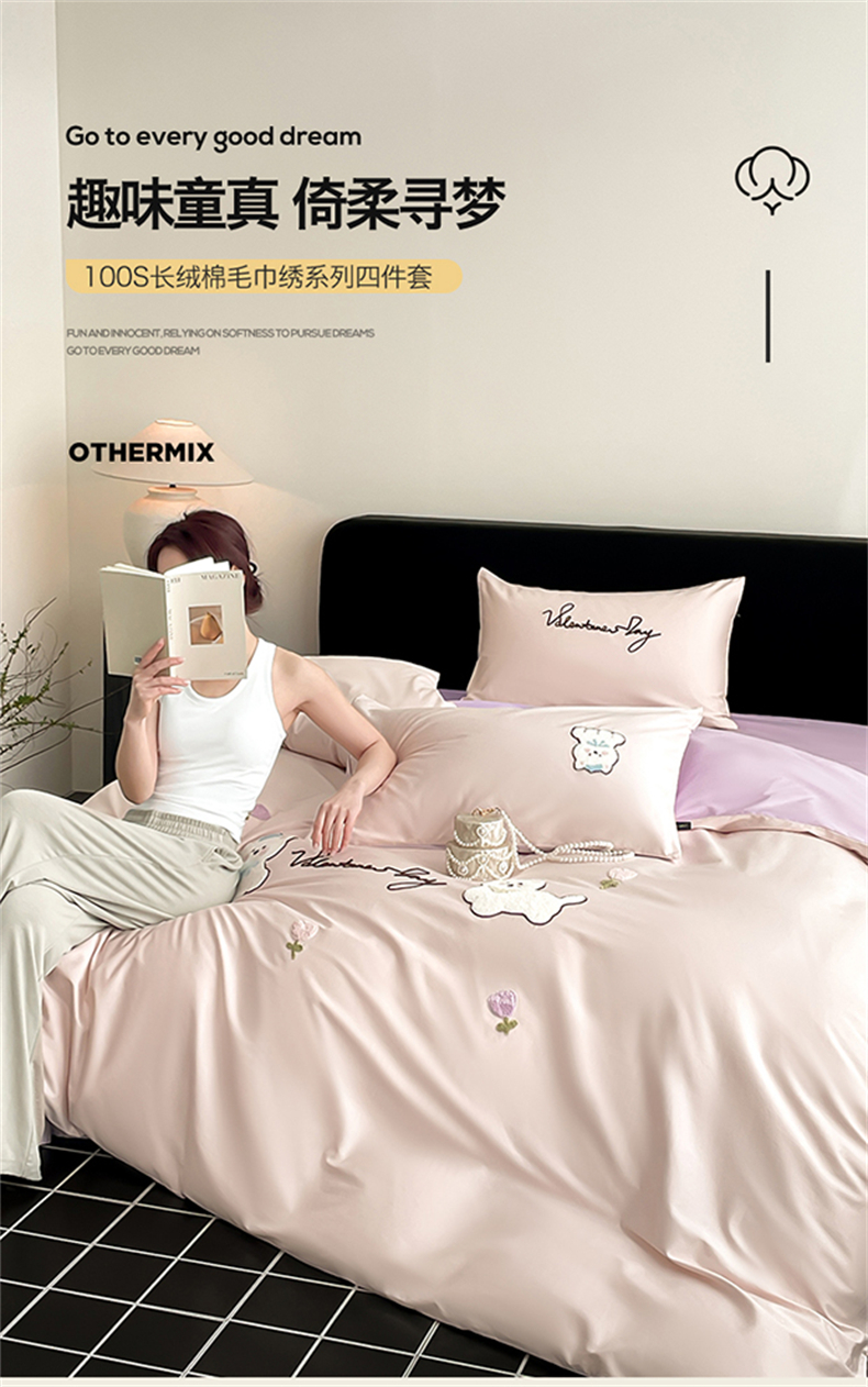 (总)蓝米卡夫 2026春季新款-100S长绒棉毛巾绣系列四件套-蛋糕兔兔(礼盒),蛋糕兔兔-芝士粉芋,蛋糕兔兔-美丽梦幻紫,蛋糕兔兔-桃粉幻紫