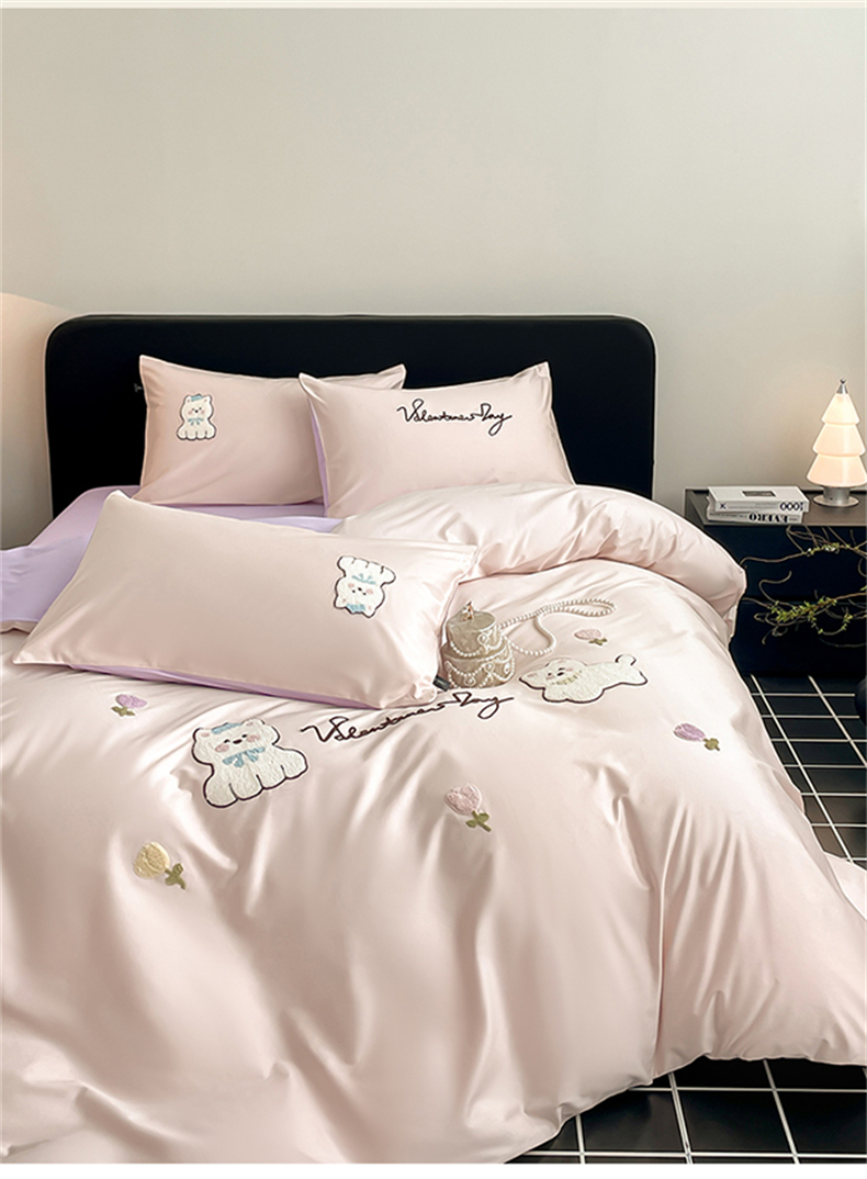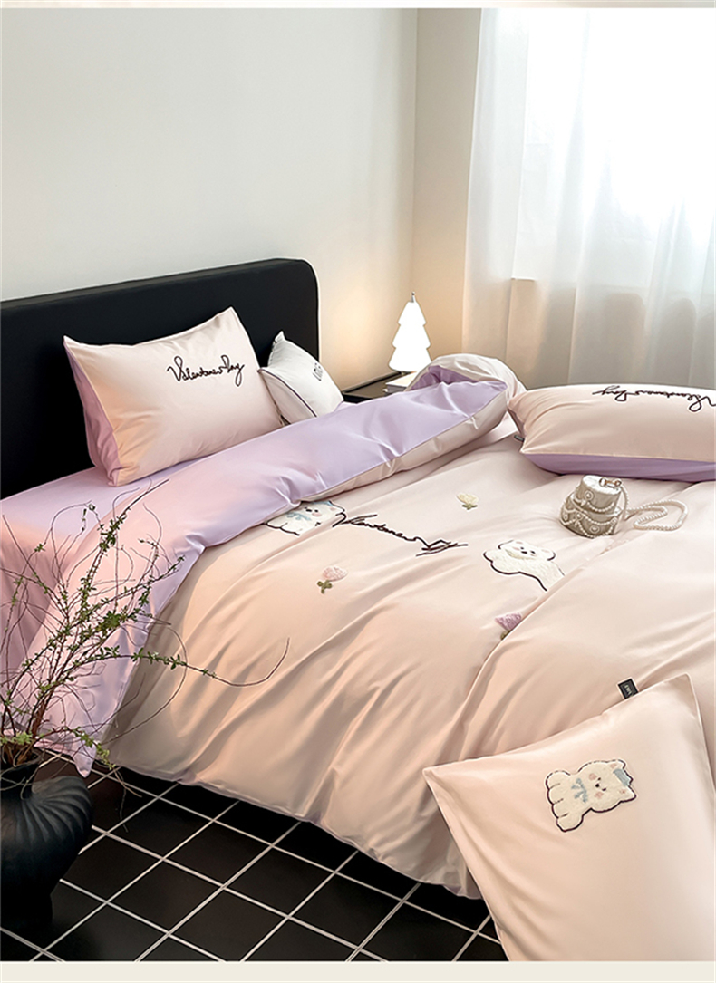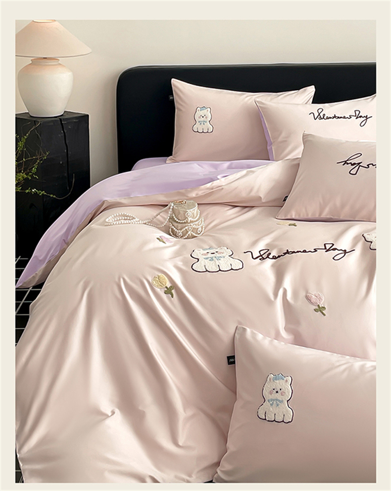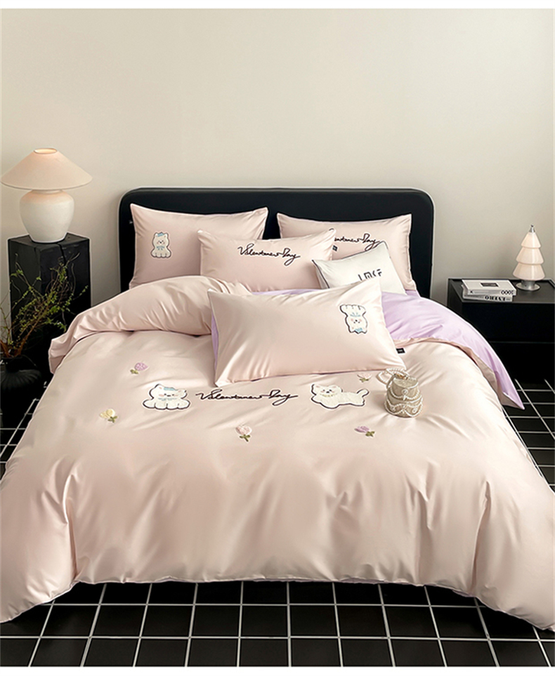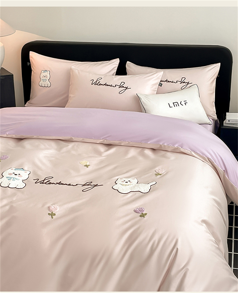 蓝米卡夫 2026春季新款-100S长绒棉毛巾绣系列四件套-花犬狗狗(礼盒) 花犬狗狗-桃粉幻紫