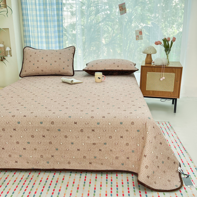 欣宜家纺 2026新款全棉纱布加宝宝绒填充棉花床盖三件套 浅夏-米