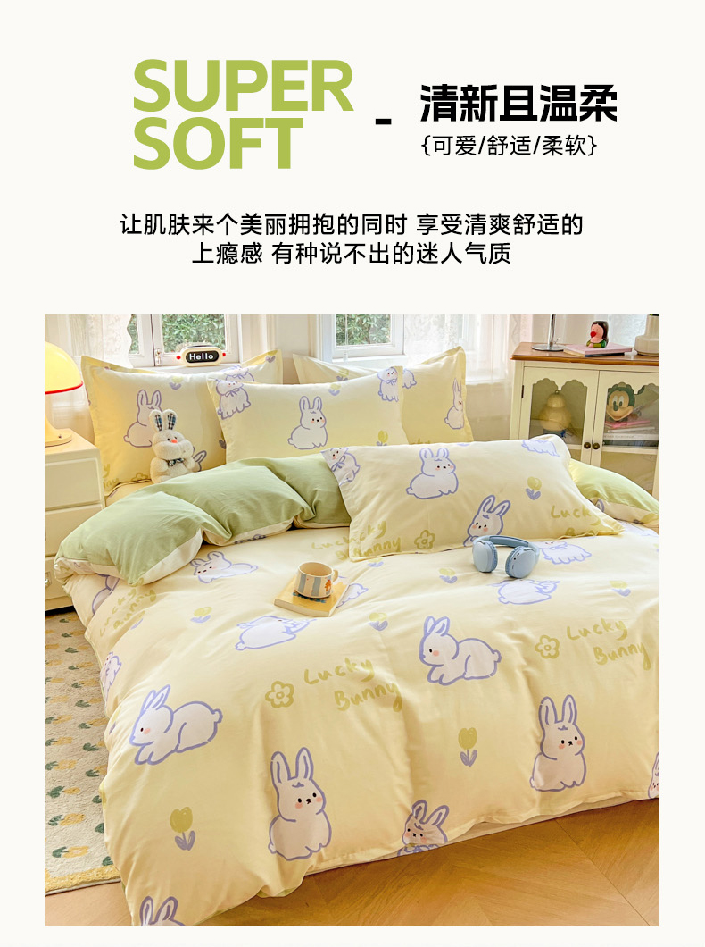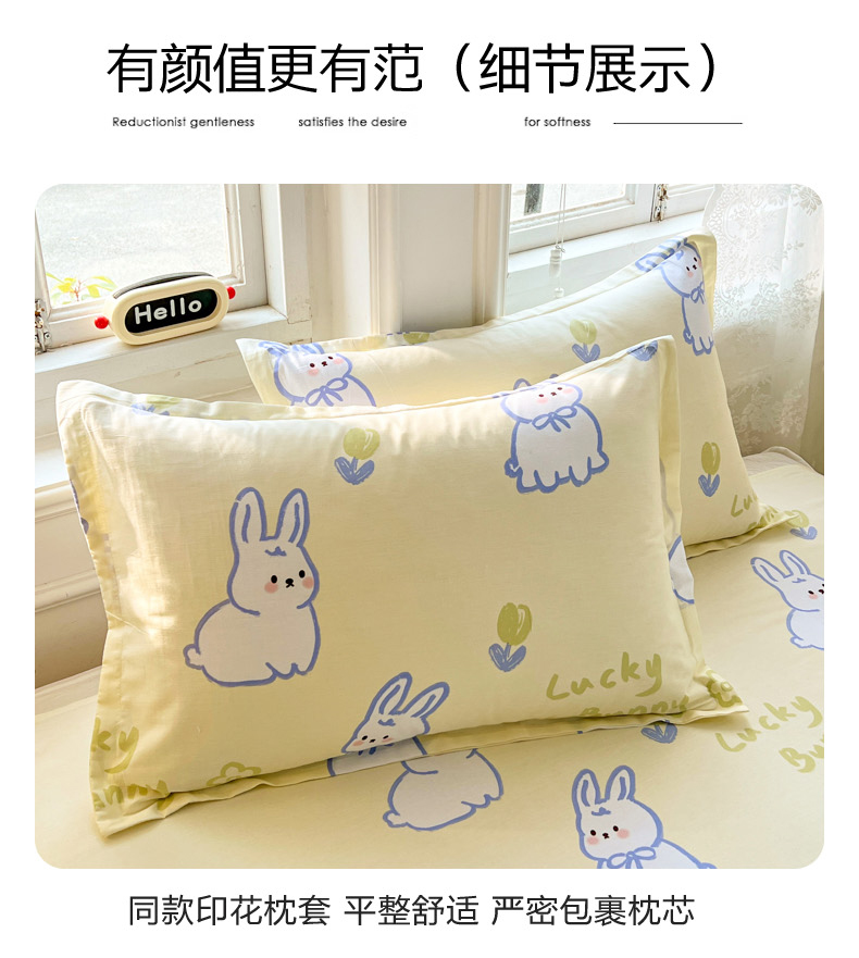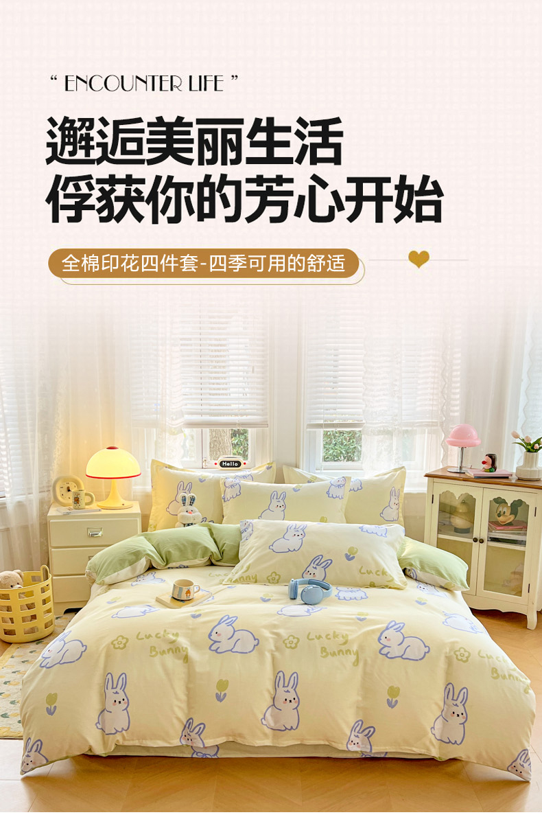 商品名称:世爵 2026春夏新款全棉纯棉印花小清新四件套 吉祥兔