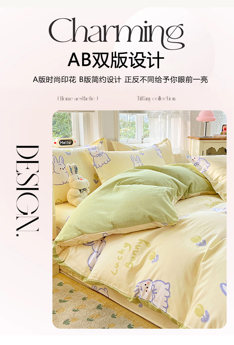 世爵 2026春夏新款全棉纯棉印花小清新四件套 吉祥兔