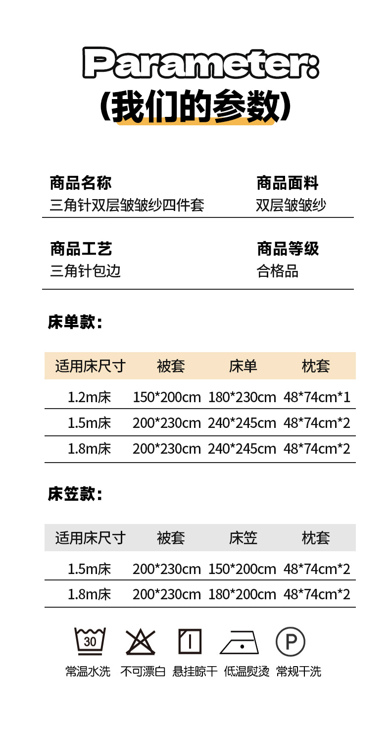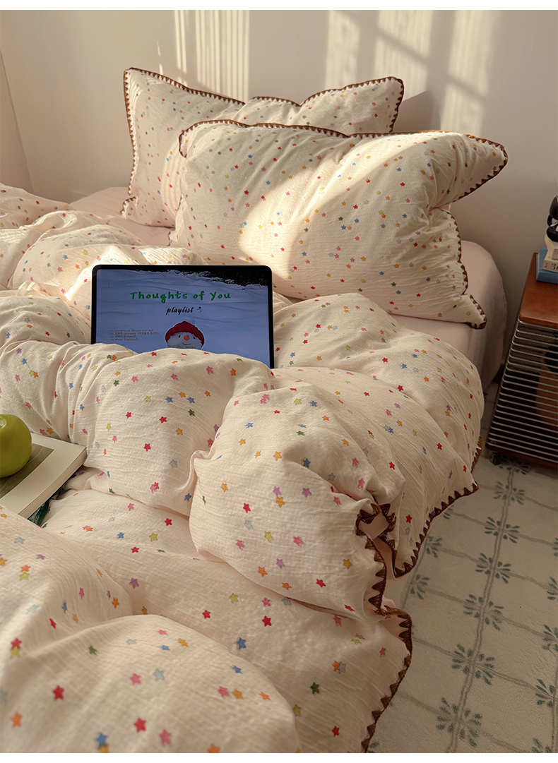 商品名称:轻奢坊 2026新款三角针双层纱皱皱纱韩系清新风四件套 三角针-幸运星星