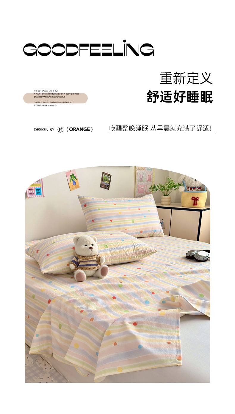 • 91家纺网 家纺一手货源 找家纺 沐芷 2026 【提供买家秀】A类单床单古法水洗仿棉 单人双人床单三件套 彩虹跳跳糖