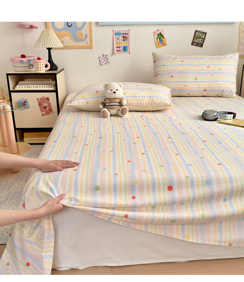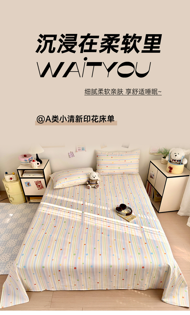 (总)沐芷 2026 【提供买家秀】A类单床单古法水洗仿棉 单人双人床单三件套,甜梦糖豆,星仔,巴黎甜心,白月光,豹纹音乐,波点汪语,彩虹跳跳糖,漫游小鱼,萌犬游记,萌物,迷你格-黄,迷你格-蓝,奶味圆饼,暖意小熊,樱桃物语