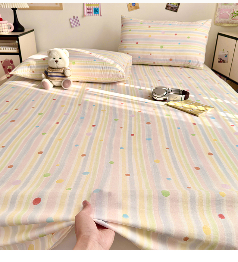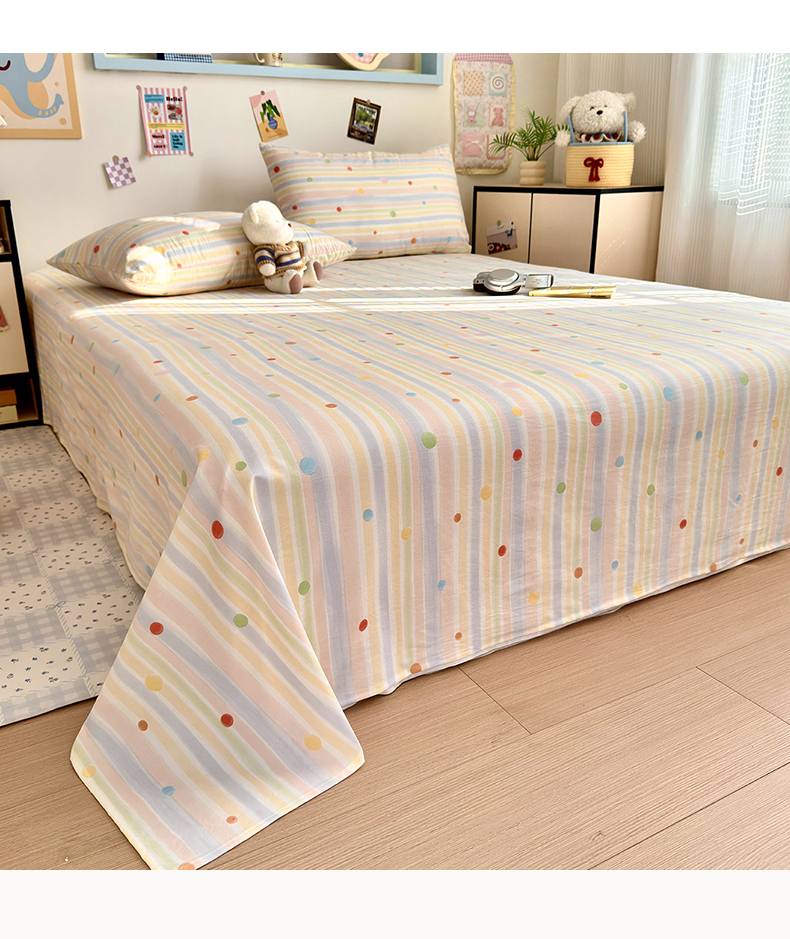 沐芷 2026 【提供买家秀】A类单床单古法水洗仿棉 单人双人床单三件套 彩虹跳跳糖
