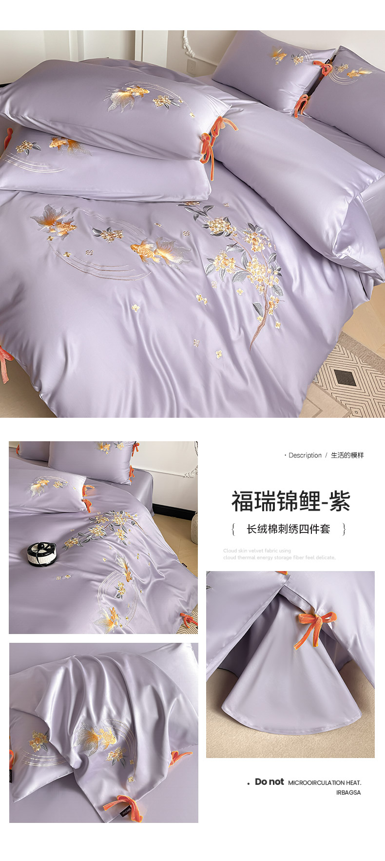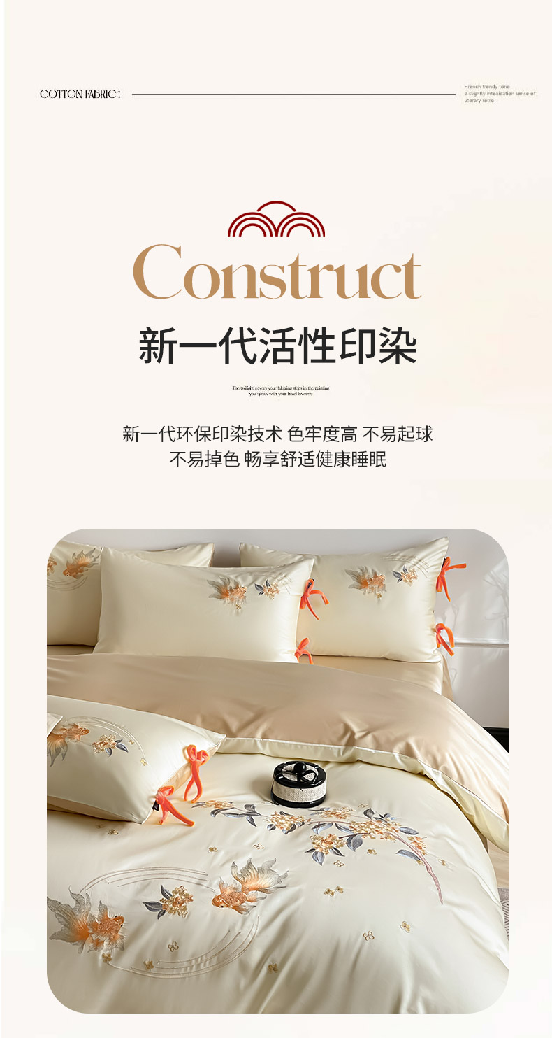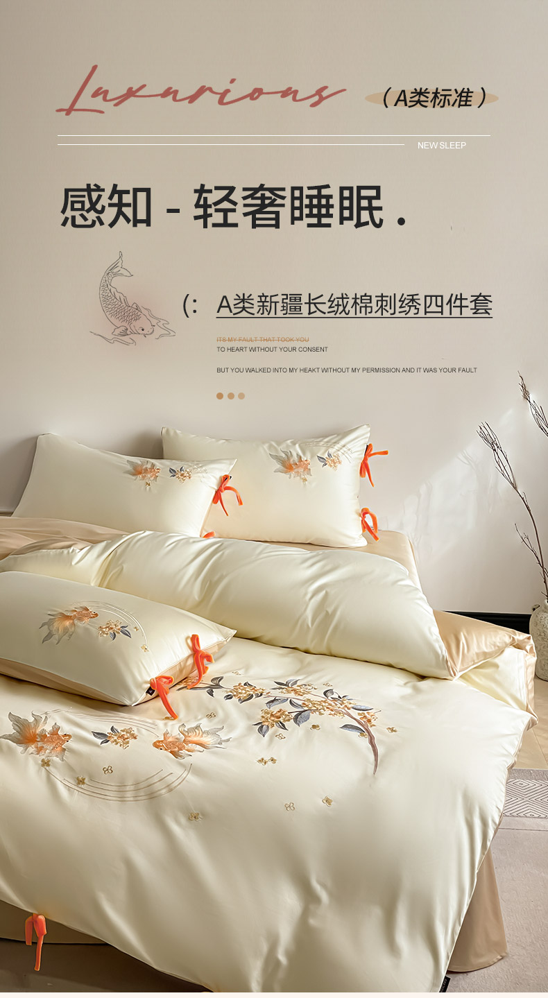 当前位置: 91家纺网 > 商品网购 > 床品套件 > 四件套 > 长绒棉四件套 > 2026新款50S双股A类长绒棉纯棉四件套全棉喜庆刺绣被套床单床笠-福瑞锦鲤 福瑞锦鲤-金