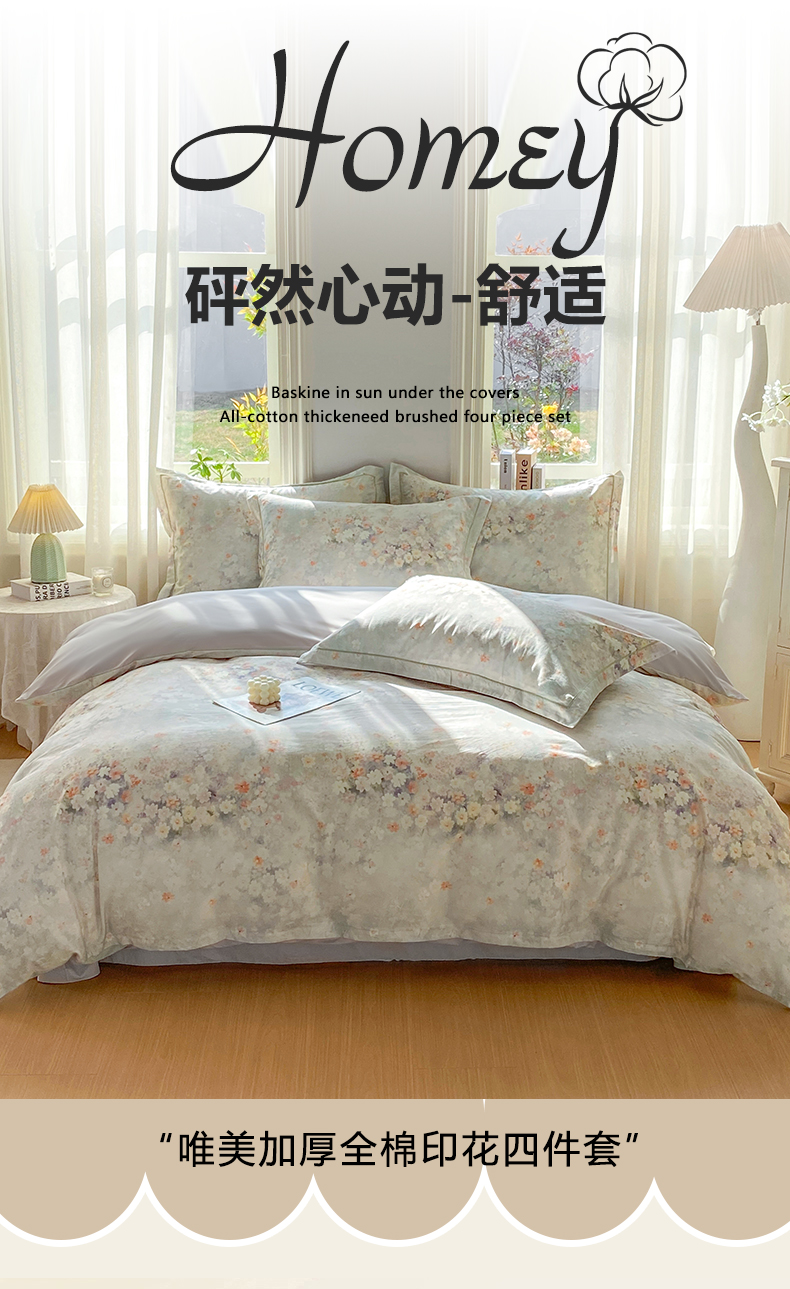 当前位置: 91家纺网 > 商品网购 > 床品套件 > 四件套 > 全棉普通四件套 > XIWEN-希文家纺 2026新款40支全棉13376数码印花四件套-第二批 花溪-卡其