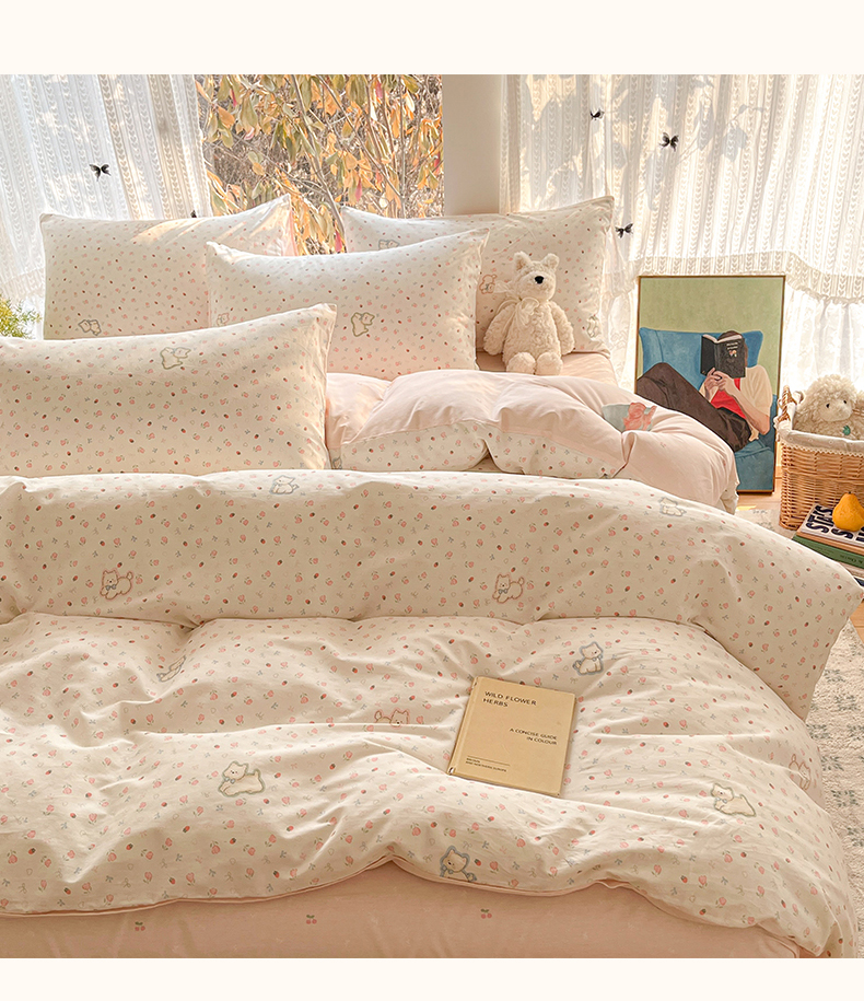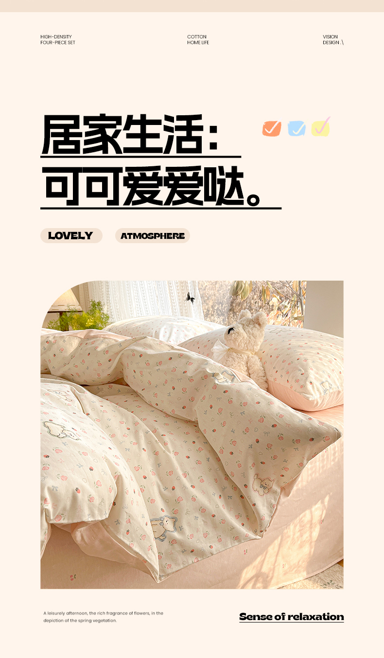 (总)吉象家纺 2026春夏新款全棉纯棉印花四件套,可爱星人,爱心小龙,鼻涕狗,嘟嘟小熊,花园梦梦,萌星,免兔野餐会,甜酱小猫(粉),兔兔梦境 米,熊熊时光,眼镜狗狗