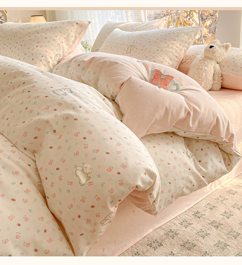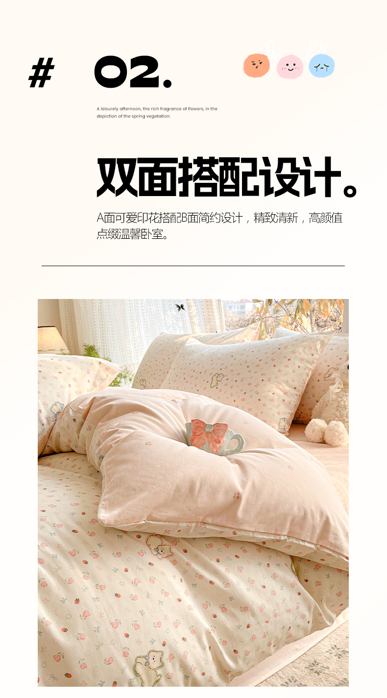 (总)吉象家纺 2024新款全棉双层纱四件套叠拍田园风直播电商品质优选,草莓小兔,粉郁,国风,花千朵,花枝兔,露娜,奶油派,晴天,运动小熊,紫郁
