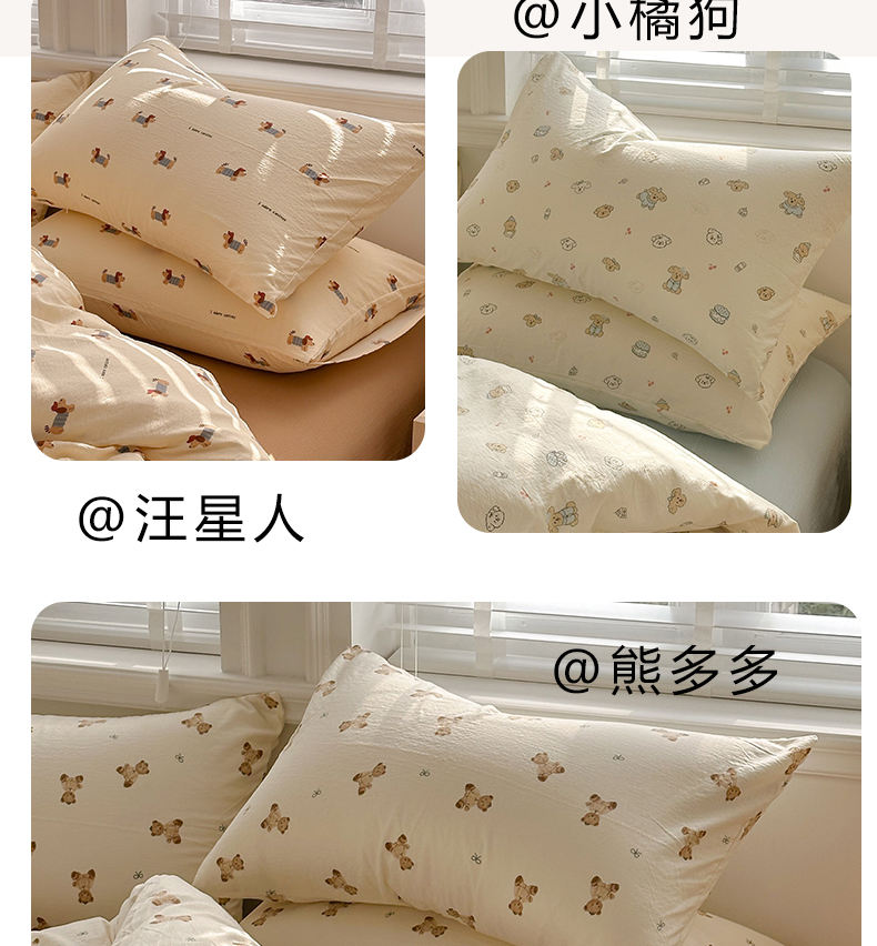 (总)多品家纺 2026新款奶呼呼超柔云感双层纱系列单枕套,白露,半岛兰格,半岛紫格,豹纹猫咪,粉粉小花,福气满满,花田小狗,欢乐时光,开心狗,棉花兔兔,浅浅春意,桃气兔兔,淘气园,汪星人,小橘狗,熊多多,熊熊空间,学院派,樱桃蓝,樱桃紫,组合图