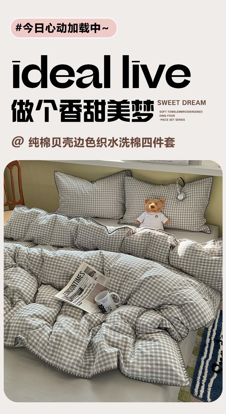 当前位置: 91家纺网 > 商品网购 > 床品套件 > 四件套 > 全棉普通四件套 > XIWEN-希文家纺 2026新款40支全棉色织水洗棉贝壳边四件套 未央-灰