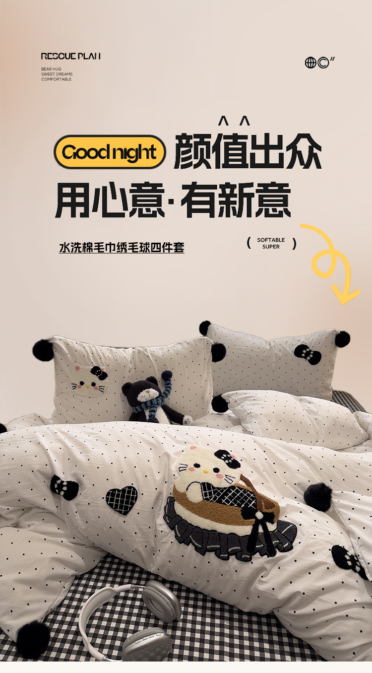 当前位置: 91家纺网 > 商品网购 > 床品套件 > 四件套 > 毛巾绣四件套 > 盼季家纺 2026新款毛巾绣四件套波点系列 毛巾绣-紫波猫咪酱