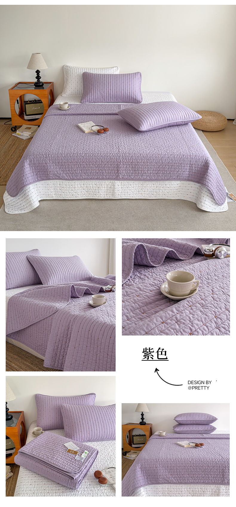 (总)沐纯家居 2026新款60支全棉纯棉米粒绣纯色床盖三件套,白色,绿色,紫色,粉色,黄色,灰色,卡其色,蓝色,组合图仅供展示-不可下单