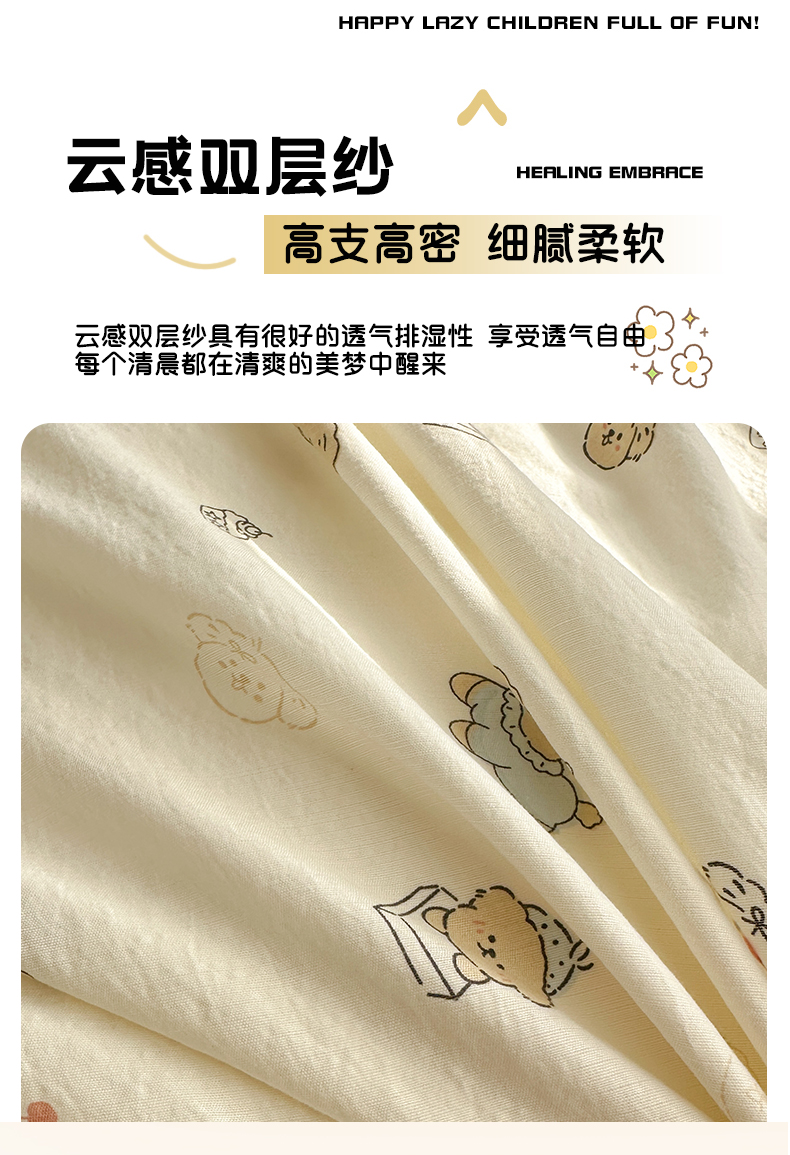 (总)多品家纺 2026新款奶呼呼超柔云感双层纱系列单被套,白露紫,半岛兰格,半岛紫格,豹纹猫咪,粉粉小花,福气满满,花田小狗,欢乐时光,开心狗,棉花兔兔,浅浅春意,桃气兔兔,淘气园,汪星人,小橘狗,熊多多,熊熊空间,学院派,樱桃蓝,樱桃紫