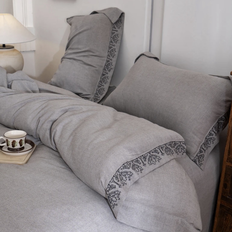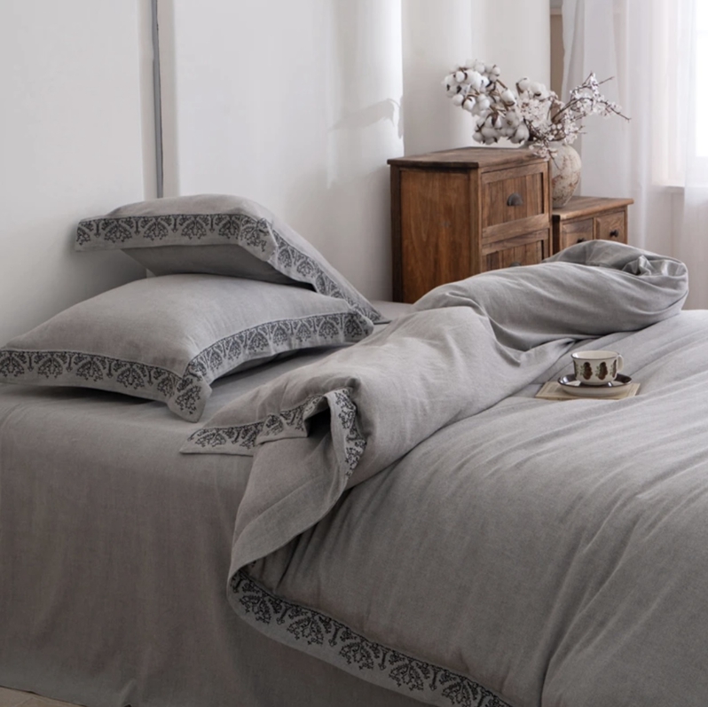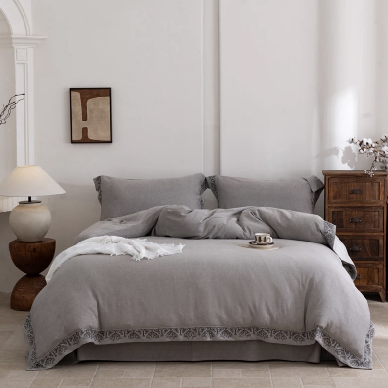 (总)双层纱家居 2025新款棉麻混纺刺绣四件套空谷幽兰