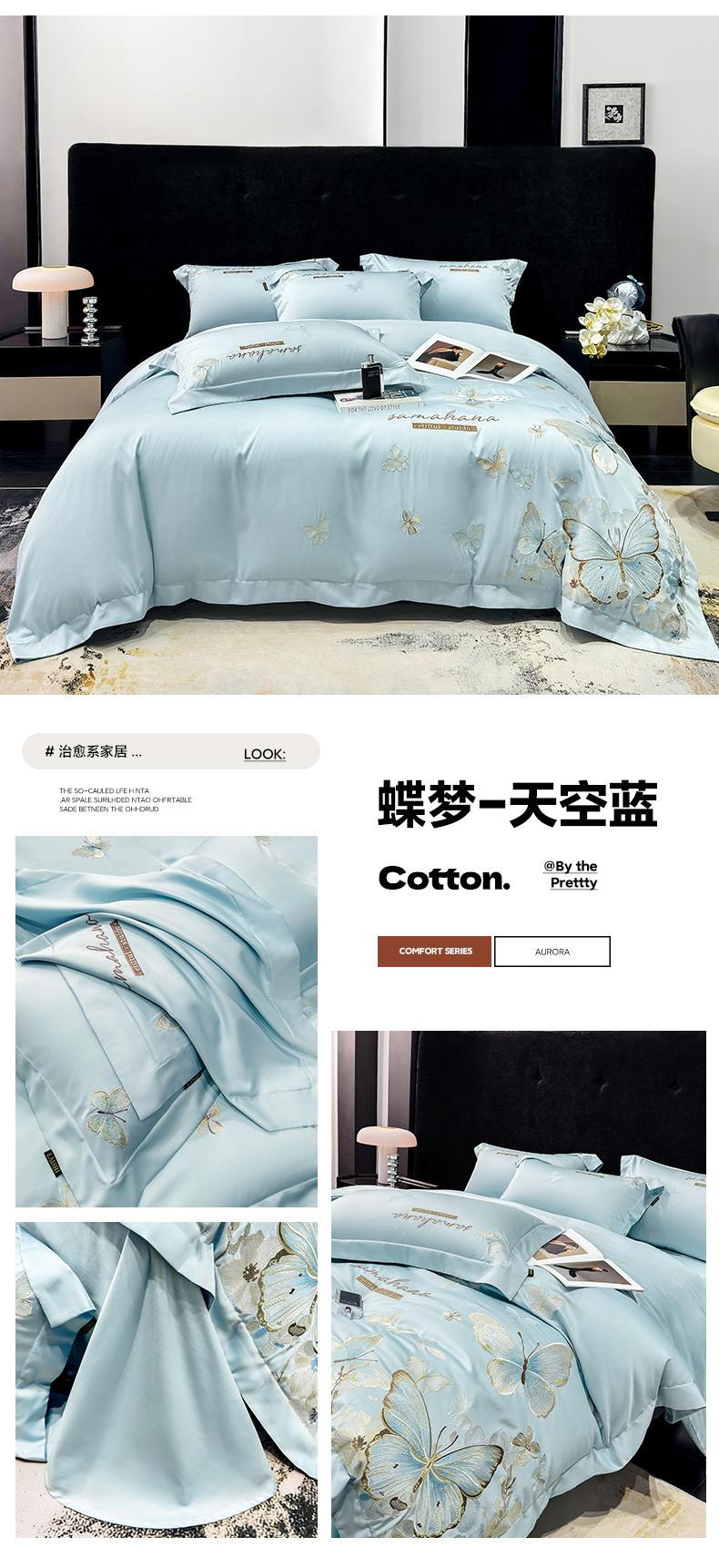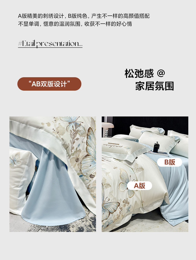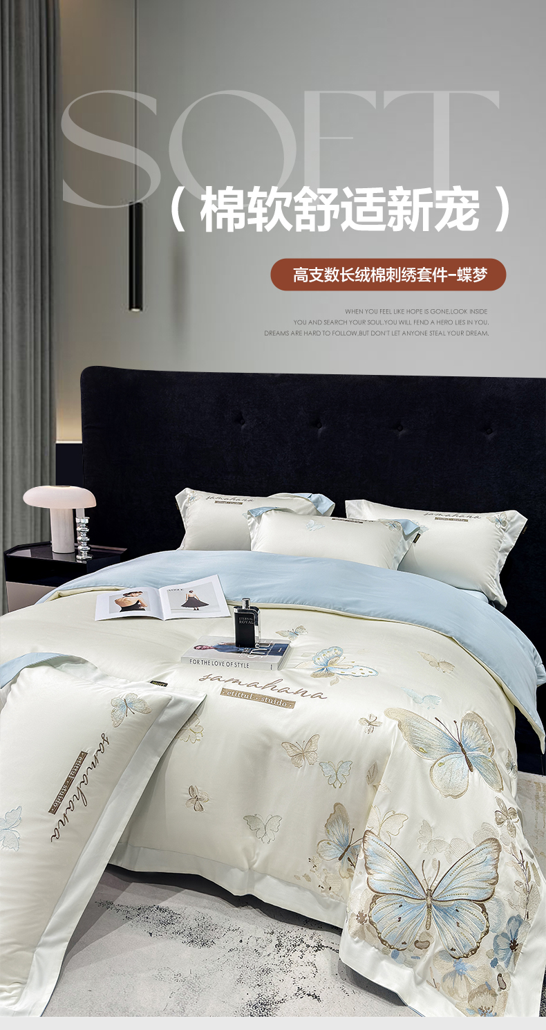 当前位置: 91家纺网 > 商品网购 > 床品套件 > 四件套 > 长绒棉四件套 > (总)莱势 2026新款50s贡缎100支长绒棉全棉纯棉刺绣绣花四件套高端礼盒蝶梦系列