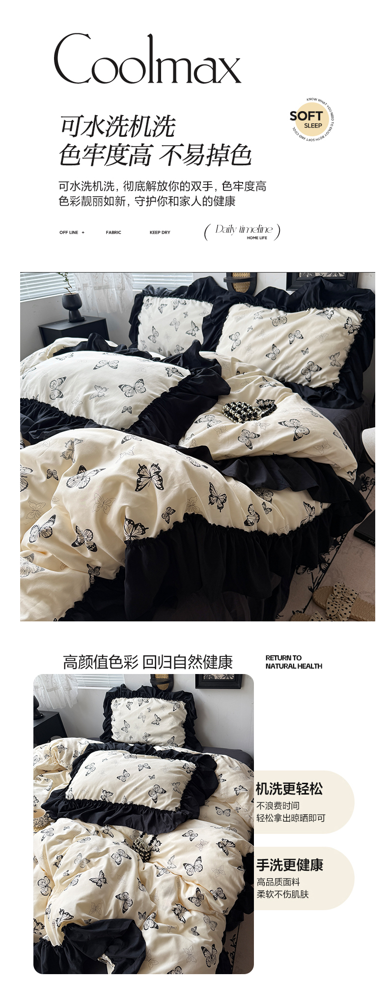 当前位置: 91家纺网 > 商品网购 > 床品套件 > 四件套 > 水洗棉四件套 > 原素 2026新款大黑边水洗棉四件套-安娜系列 安娜-蝴蝶