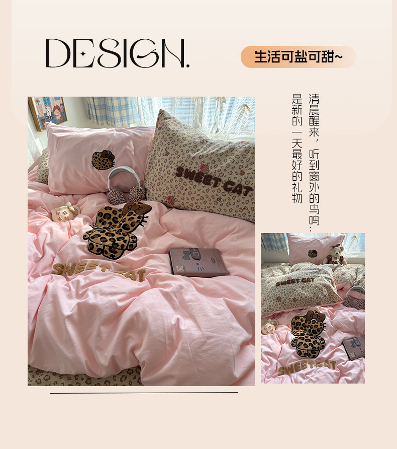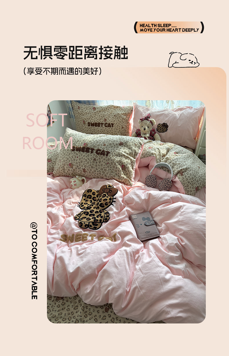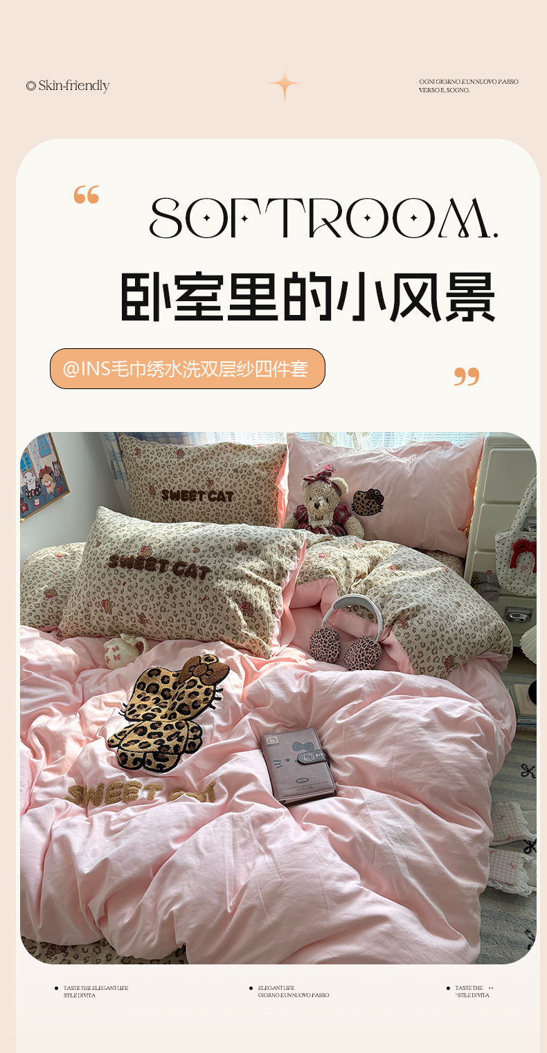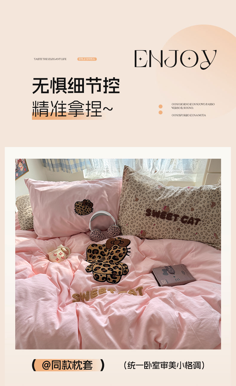 当前位置: 91家纺网 > 商品网购 > 床品套件 > 四件套 > 毛巾绣四件套 > 原素 2026新款新春卡哇伊毛巾绣四件套 豹纹背影猫