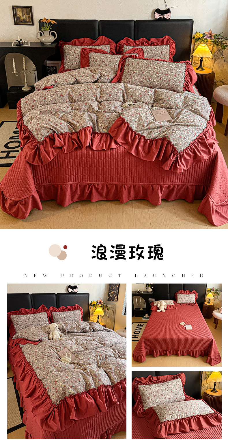 (总)富米莱(原臻工厂) 2026新款韩系古法韩国水洗棉云棉大布袋法式浪漫大花边床盖夏凉被床盖四件套,爆了樱桃,点点黑,点点红,浮世绘,花满满,浪漫玫瑰,马上有钱,玛奇朵,猫猫粉,猫猫蓝,莫松染,暮山紫,奶油兔,砚余墨,知春绿,紫兔兔