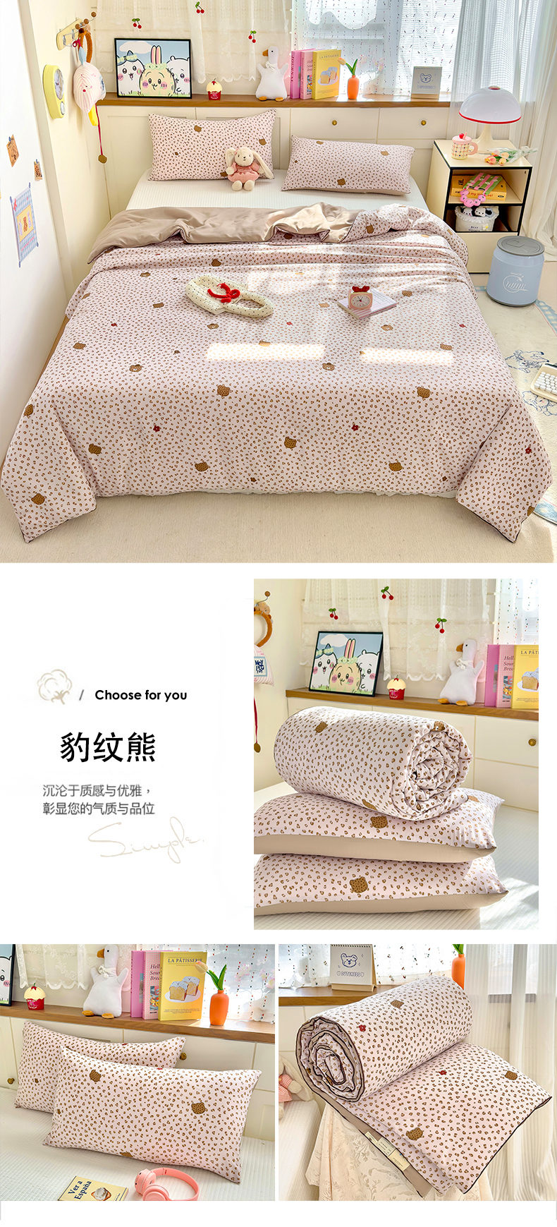 商品名称:金蕊阁 2025新款A类水洗双层纱夏被大豆夏被夏凉被空调被豹纹熊