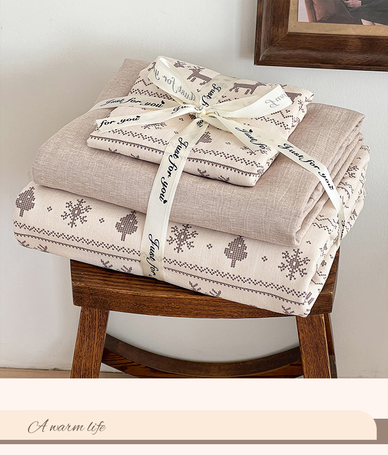 弗苓家纺 2026春季新款高克重加厚色织提花四件套 红棕小兔
