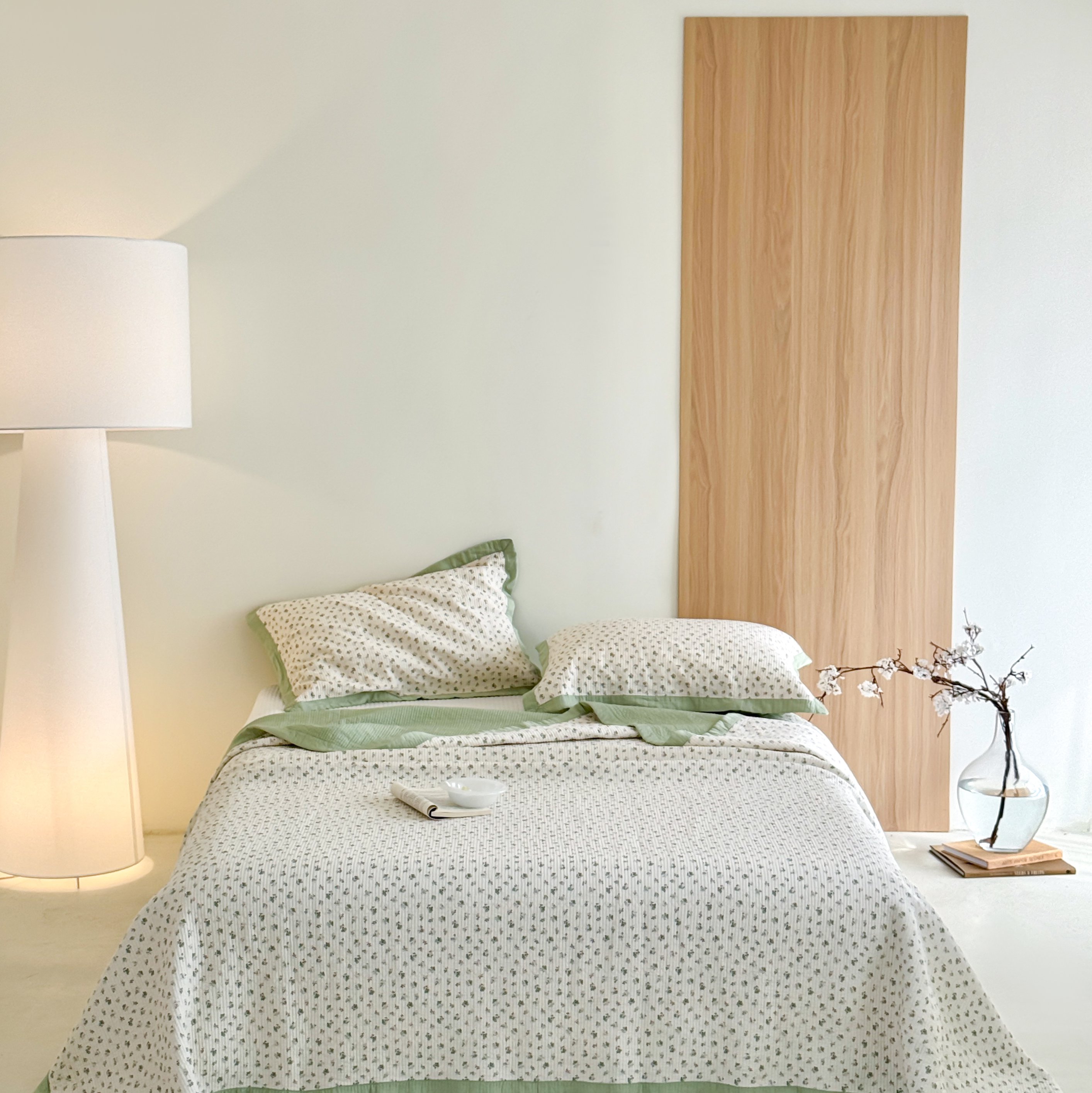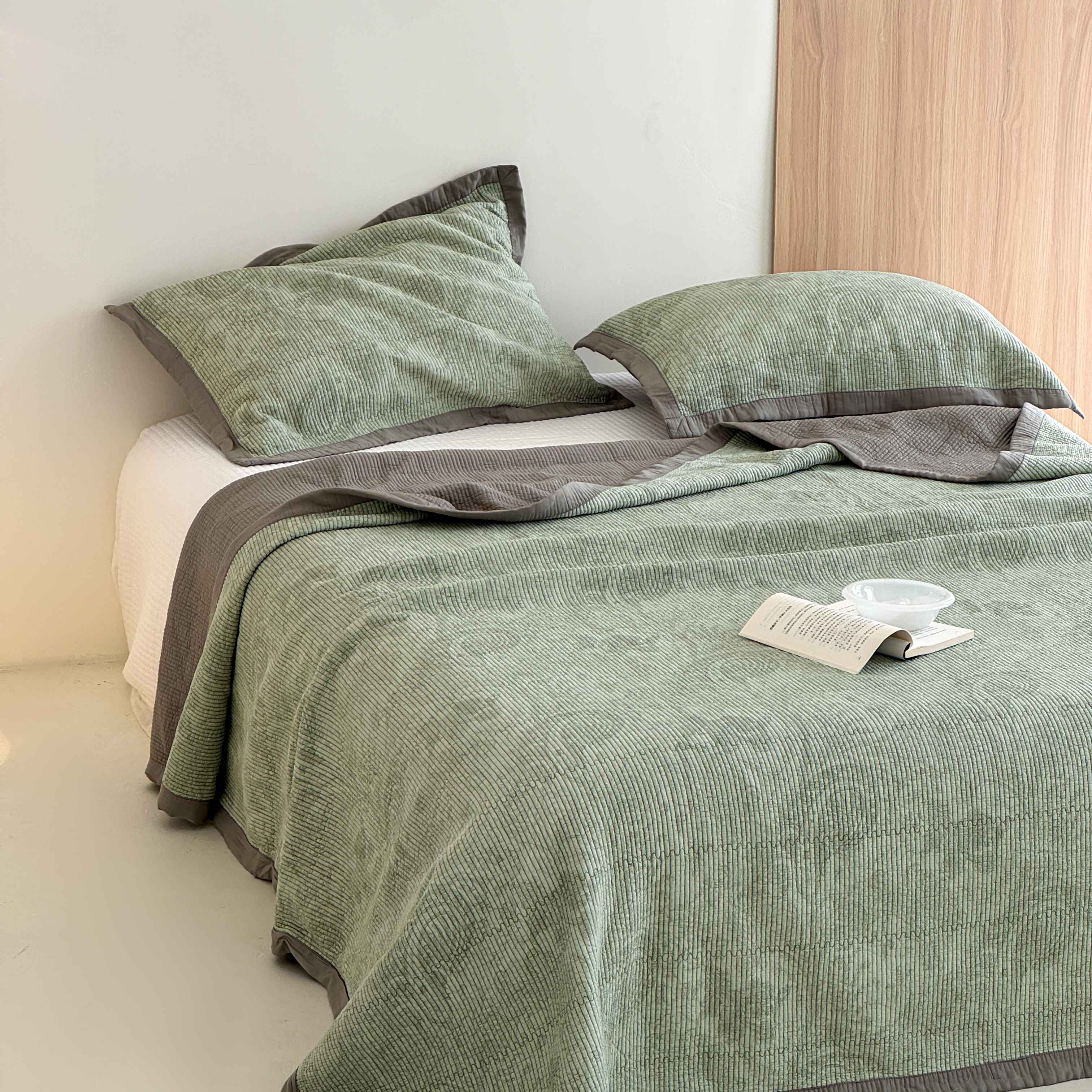 (总)床盖工厂店 2026新款双面水洗全棉填充棉花床盖三件套-欧瑞系列,欧瑞-粉,欧瑞-绿,欧瑞-米,组合图