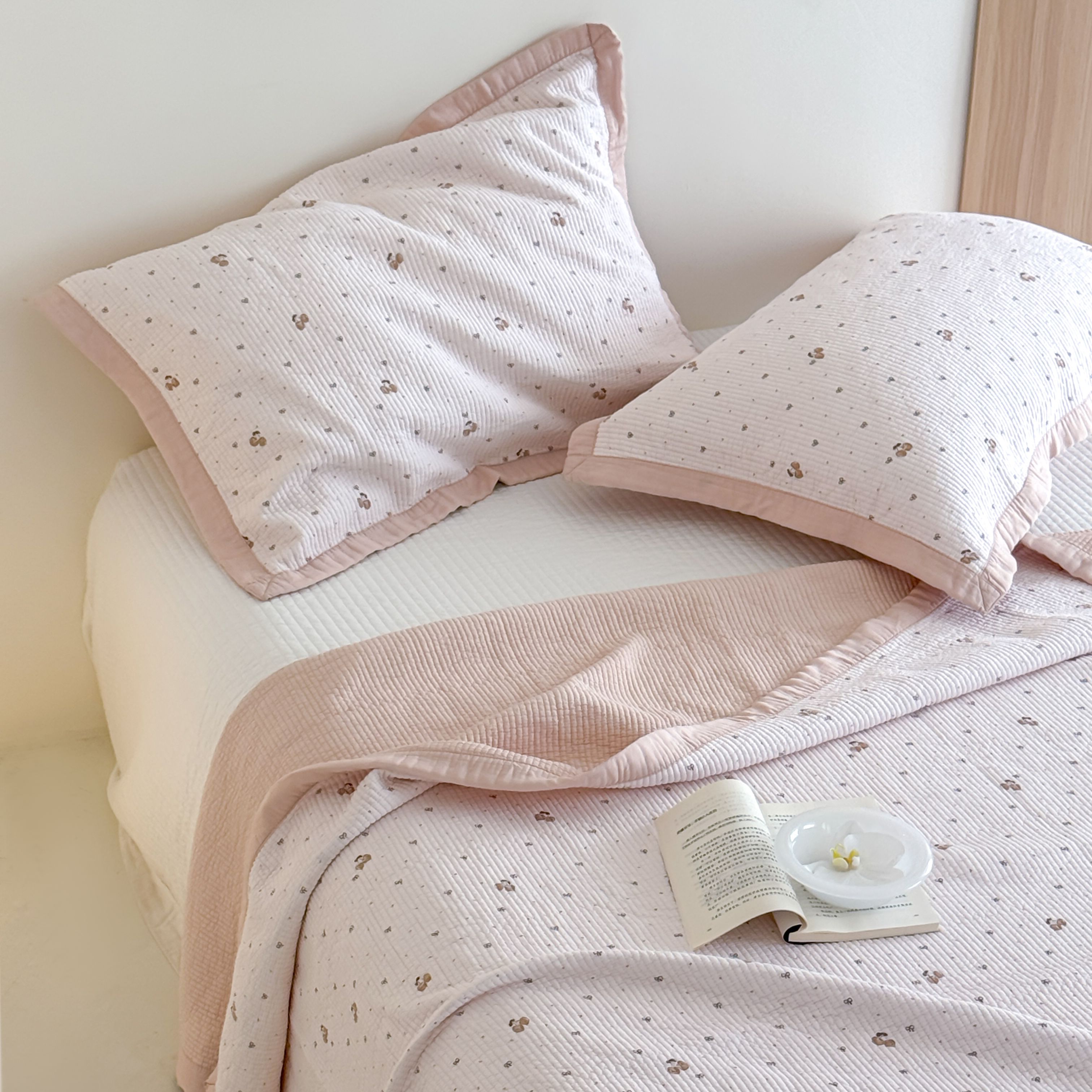 商品名称:床盖工厂店 2026新款双面可用莫代尔天丝填充80棉花床盖三件套 芝士樱桃-米