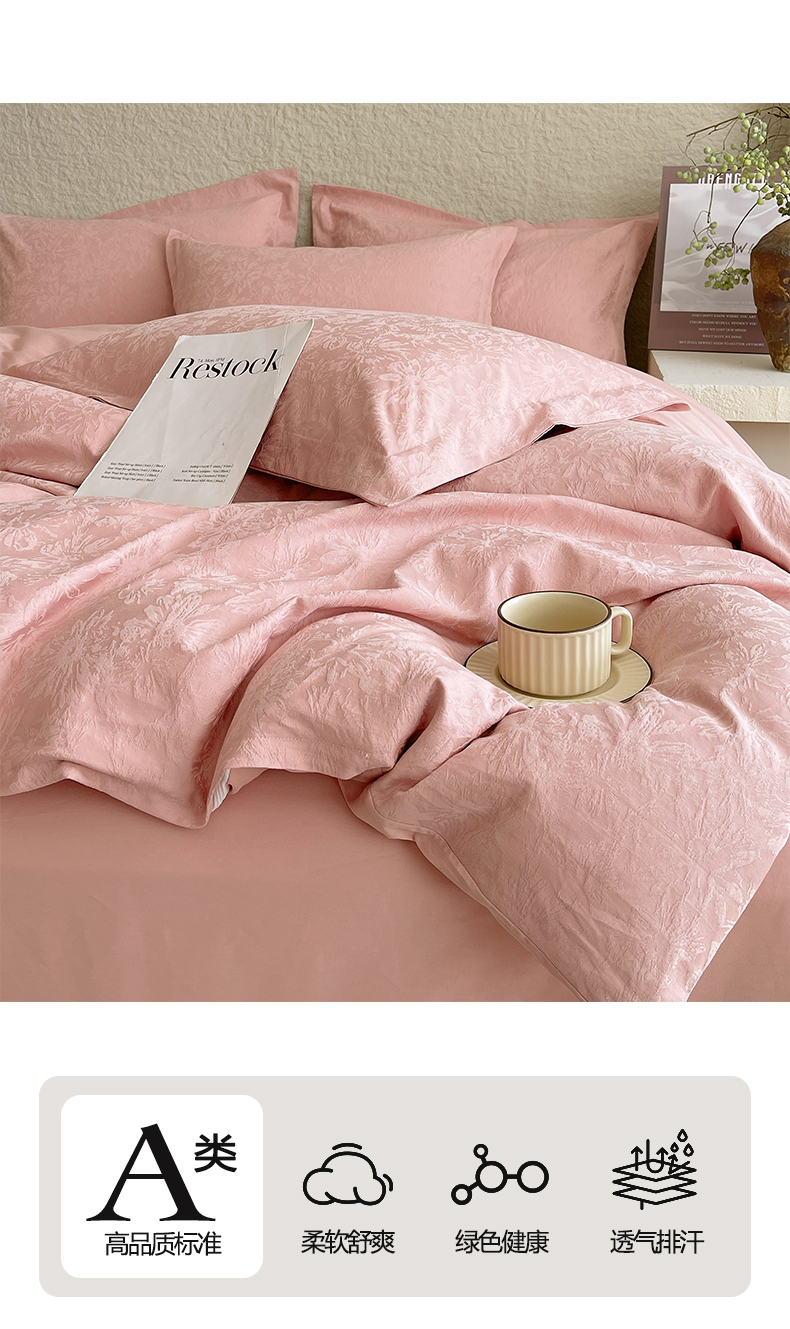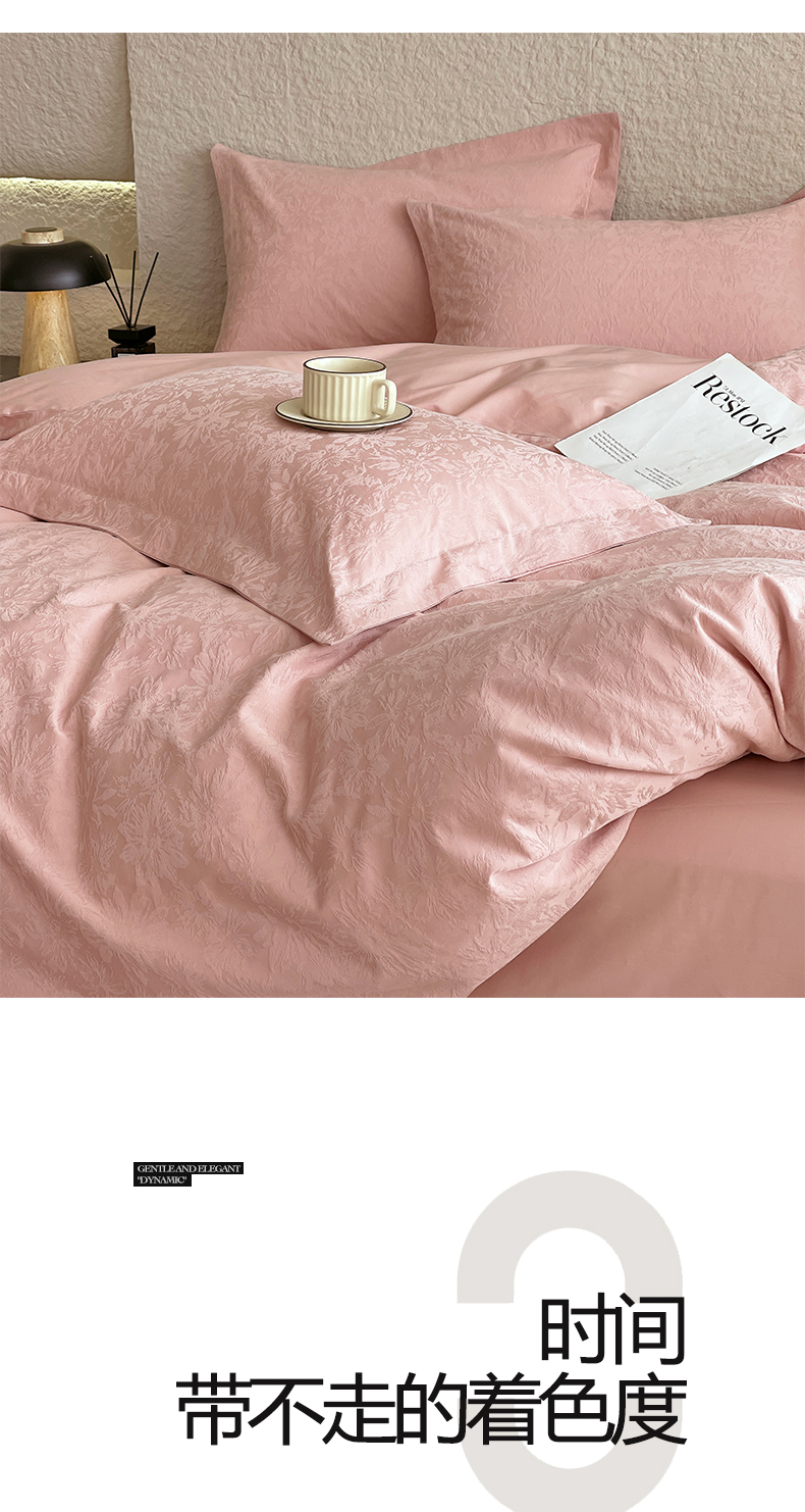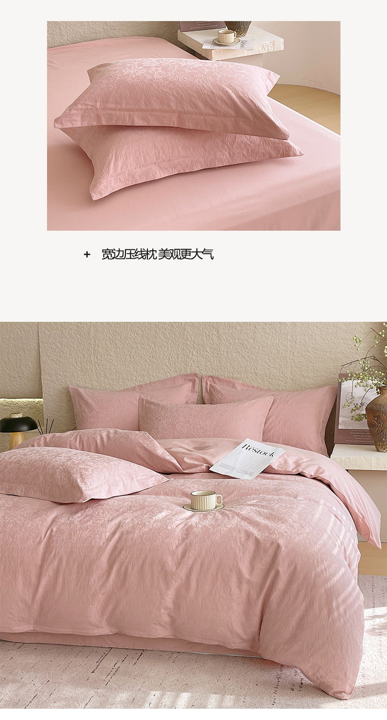 商品名称:麦田家纺 2026新款A类全棉亮面浮雕提花四件套 梵花绘-浓粉