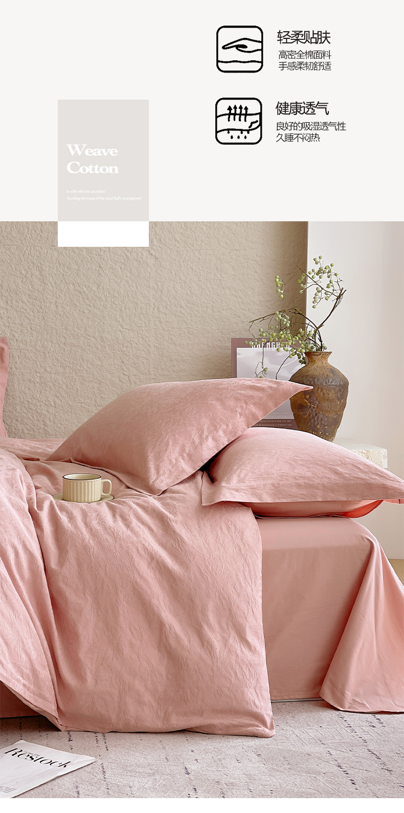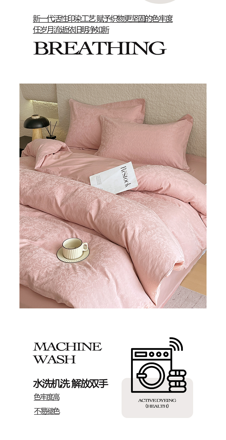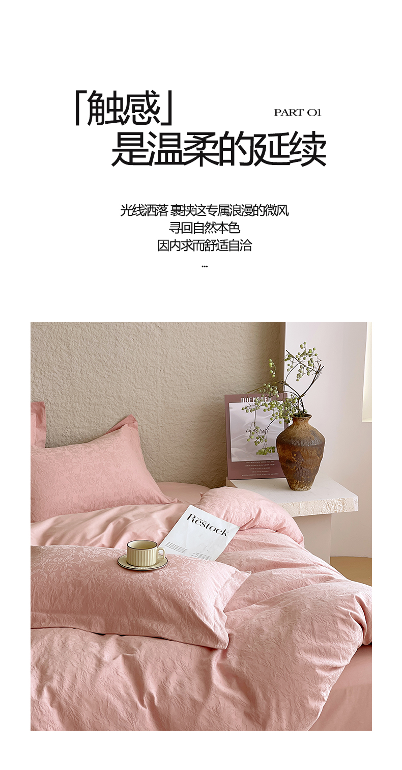 商品名称:麦田家纺 2026新款A类全棉亮面浮雕提花四件套 梵花绘-浓粉