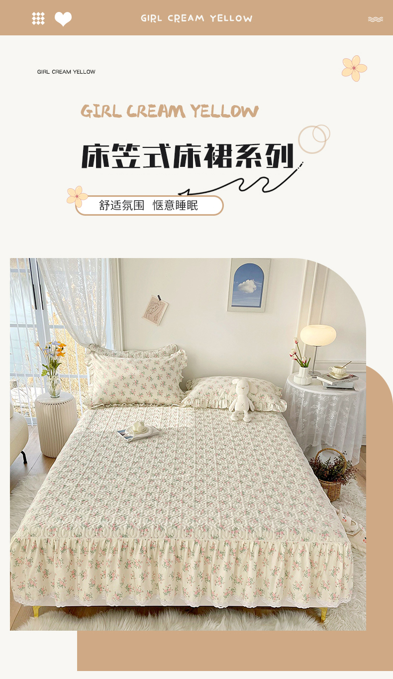 (总)忘忧草 2026新款13372全棉夹棉款床笠式床裙,1屋顶花园,2樱桃季 紫,3蜜汁 粉,4南枝,5如愿,6贝贝熊,7花簇-米,8秋洛,9少女心,10温迪