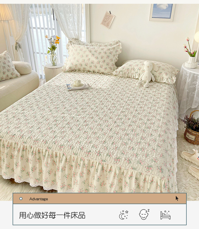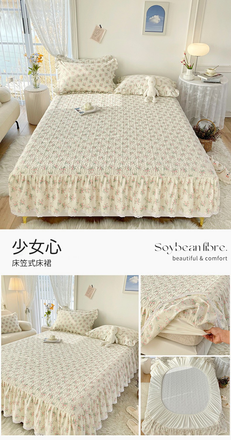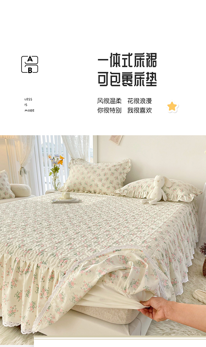 忘忧草 2026新款13372全棉夹棉款床笠式床裙 9少女心