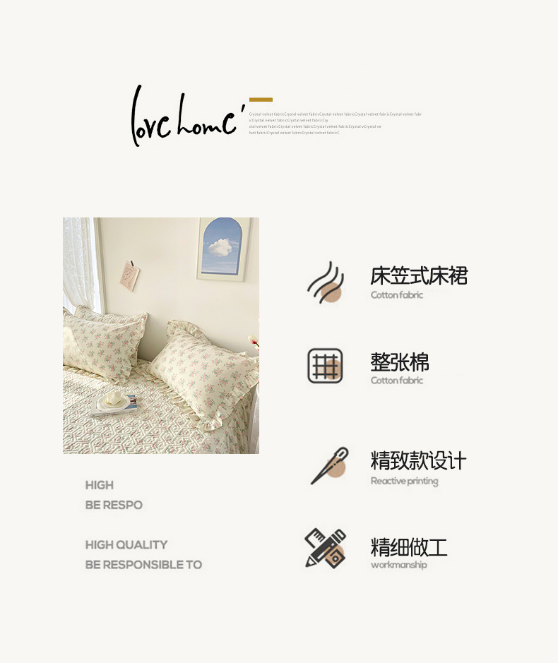 • 91家纺网 家纺一手货源 找家纺 忘忧草 2026新款13372全棉夹棉款床笠式床裙 9少女心