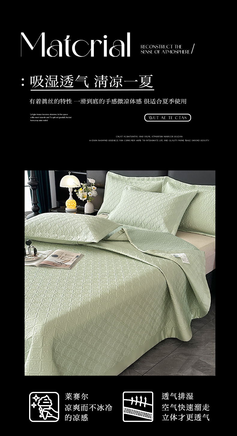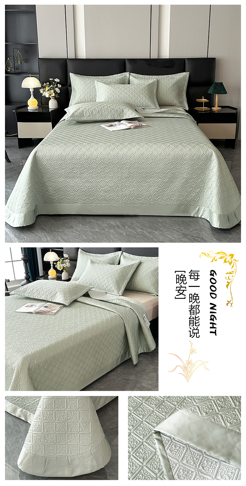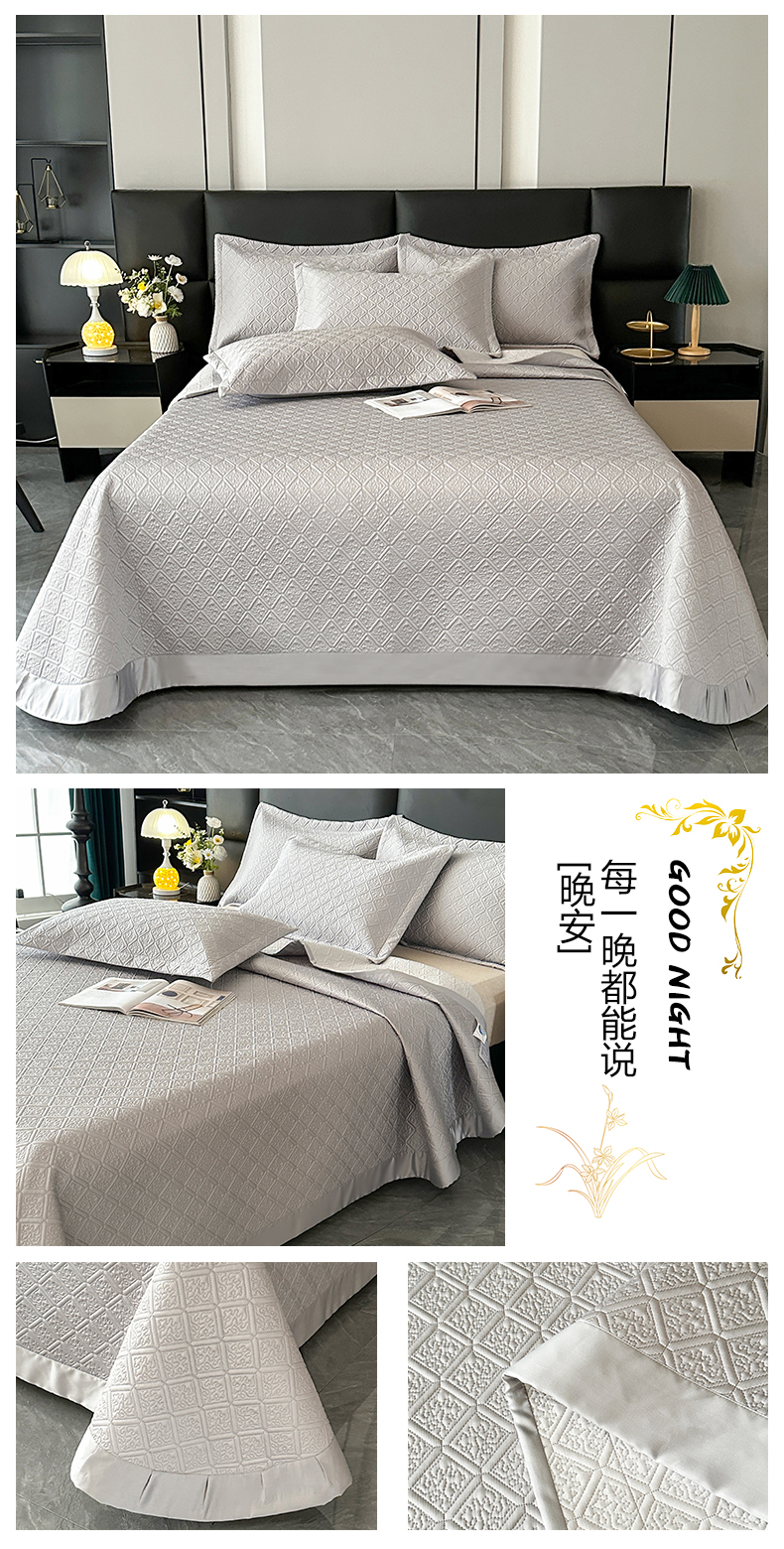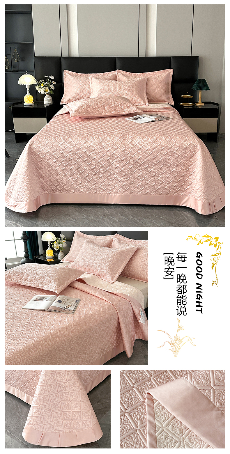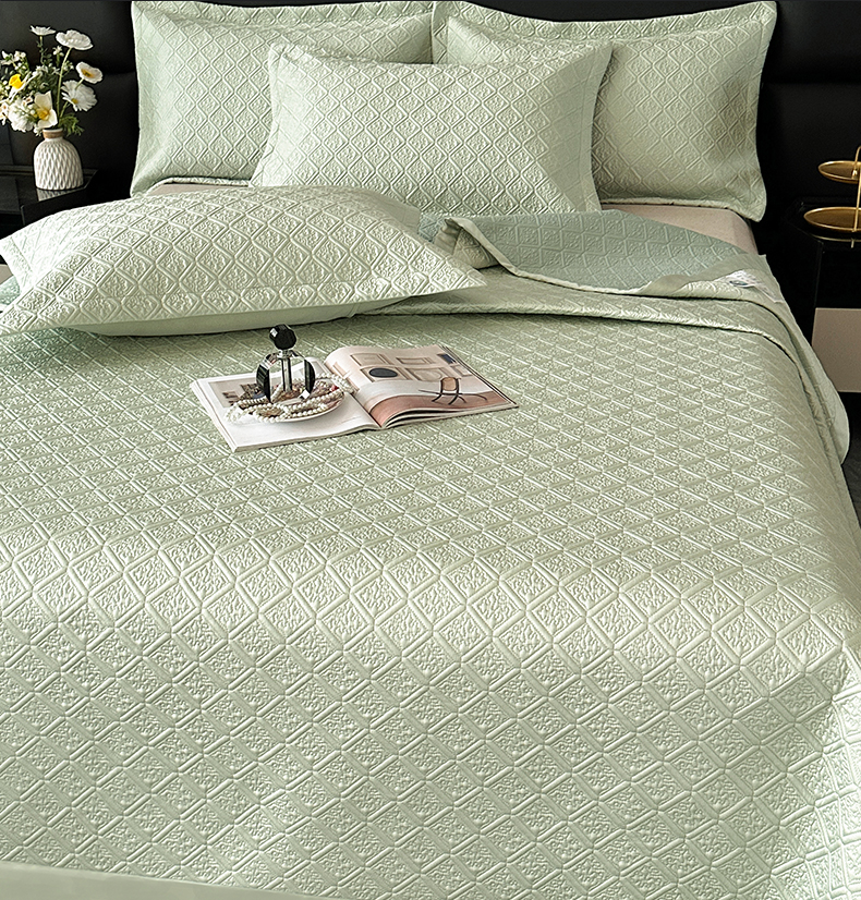 欧夏家纺 2026新款欧式夏季凉感莱赛尔天丝床盖三件套夹棉床盖床褥直播供货 大象棕