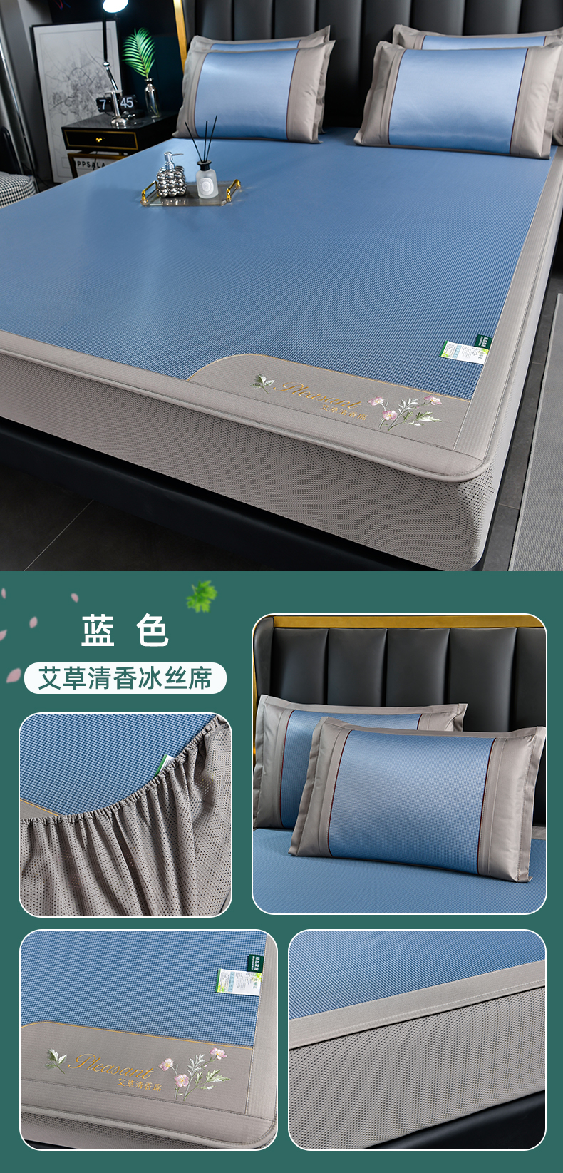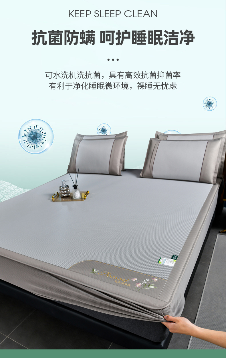 • 91家纺网 家纺一手货源 找家纺 小牛席业 2026新款艾草清香冰丝席(床笠款)凉席藤席冰藤席冰丝席竹席草席空调席乳胶席豆豆席 艾草清香冰丝席(床笠款)-灰色