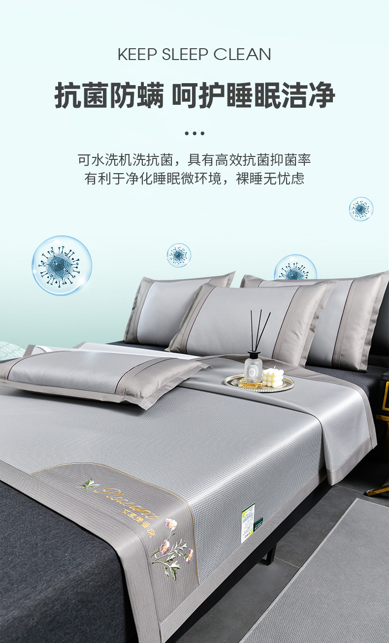 (总)2023新款超精密冰丝席-小斜纹系列-床笠款藤席凉席竹席,粉色,蓝色,绿色,银灰